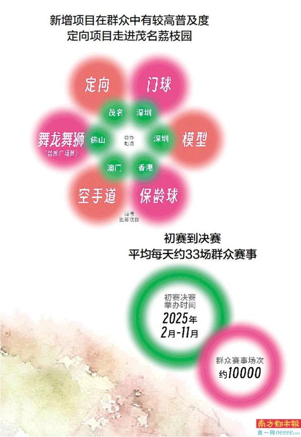 当定向赛选手走进茂名荔枝园,当81岁香港阿伯挥出超飒的乒乓球弧线,当粤港澳三地龙舟队队员喊着同一节拍的号子……第十五届全运会的群众赛事,在岭南大地上绘出活力四射的生活图景。