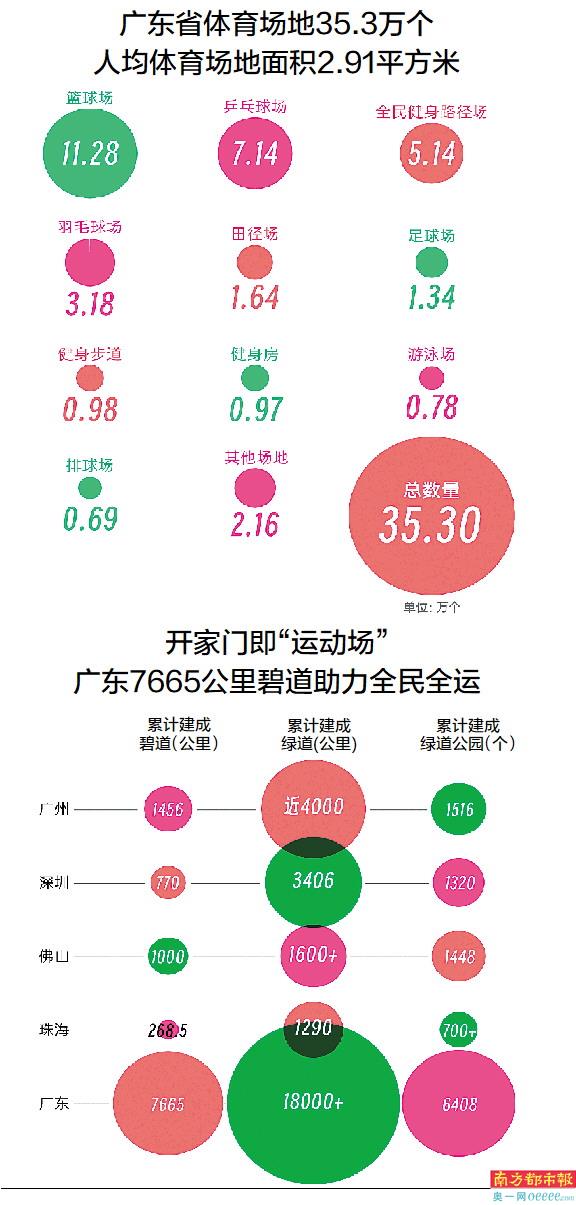 从1.8万公里城乡绿道串连起的运动空间,到人均近3平方米的体育场地,广东的绿水青山之间,市民走出家门便是运动的起点。