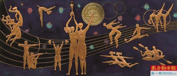 《第六届全运会纪念铜画》,广东省体委,1987年。