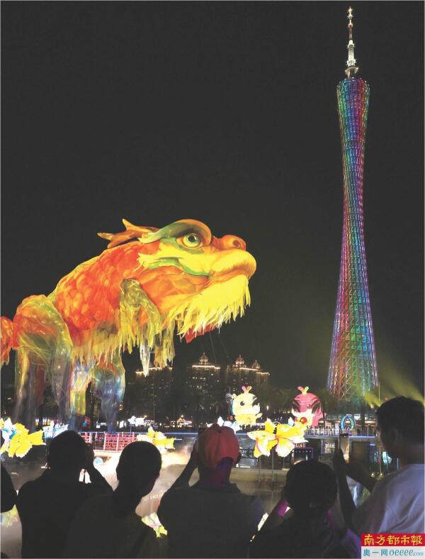 昨日,十五运会开幕式上的鳌鱼在广州国际灯光节开幕当晚限时返场,芭蕉叶、木棉花、岭南亭台等装置成灯光节“常驻嘉宾”。第32届广州园林博览会与广州国际灯光节、第十五届全国运动会深度联动,呈现“白天赏花、夜晚观灯、全天享赛”的城市盛景。 南都记者 高永佳 摄