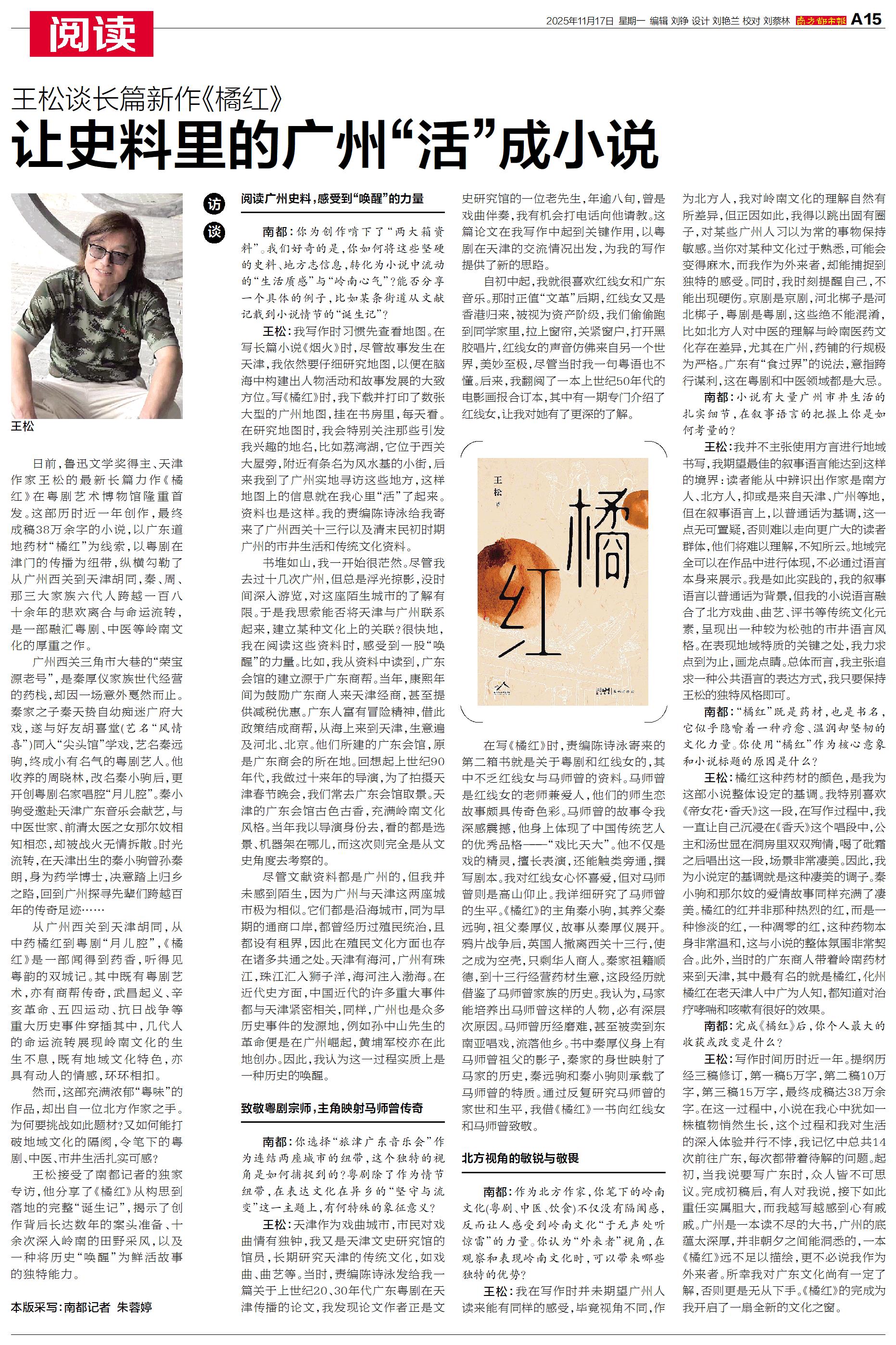日前,鲁迅文学奖得主、天津作家王松的最新长篇力作《橘红》在粤剧艺术博物馆隆重首发。