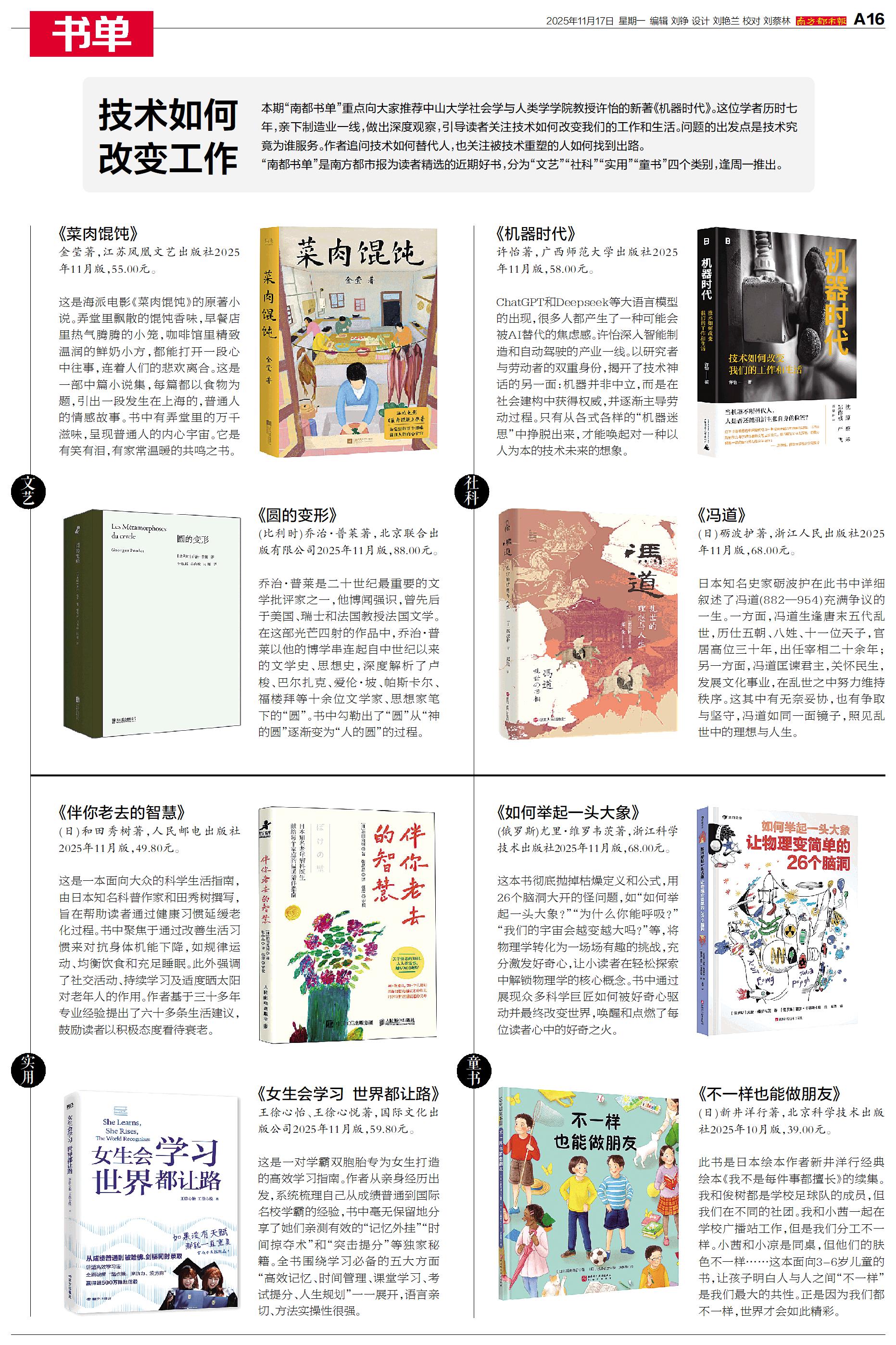 本期“南都书单”重点向大家推荐中山大学社会学与人类学学院教授许怡的新著《机器时代》。