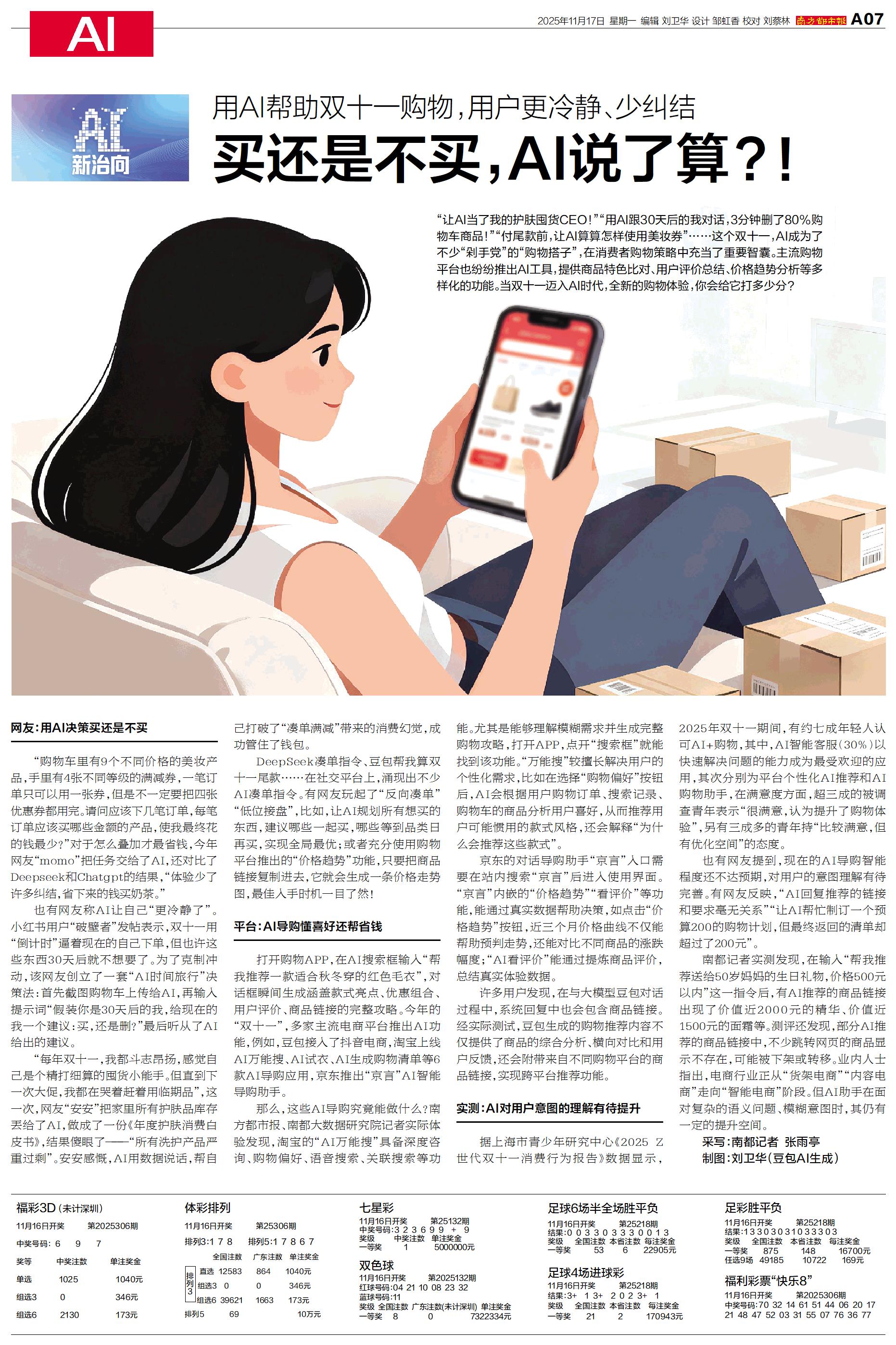 这个双十一,AI成为了不少“剁手党”的“购物搭子”,在消费者购物策略中充当了重要智囊。