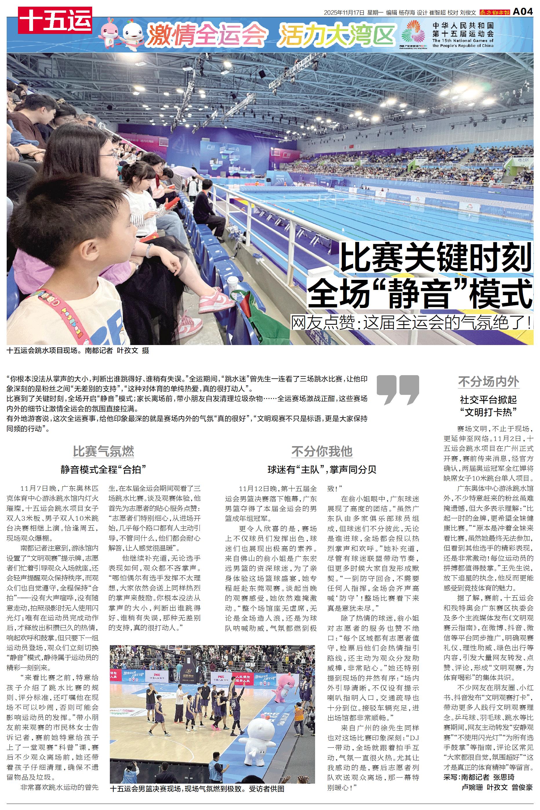 比赛到了关键时刻,全场开启“静音”模式;家长离场前,带小朋友自发清理垃圾杂物……全运赛场激战正酣,这些赛场内外的细节让激情全运会的氛围直接拉满。