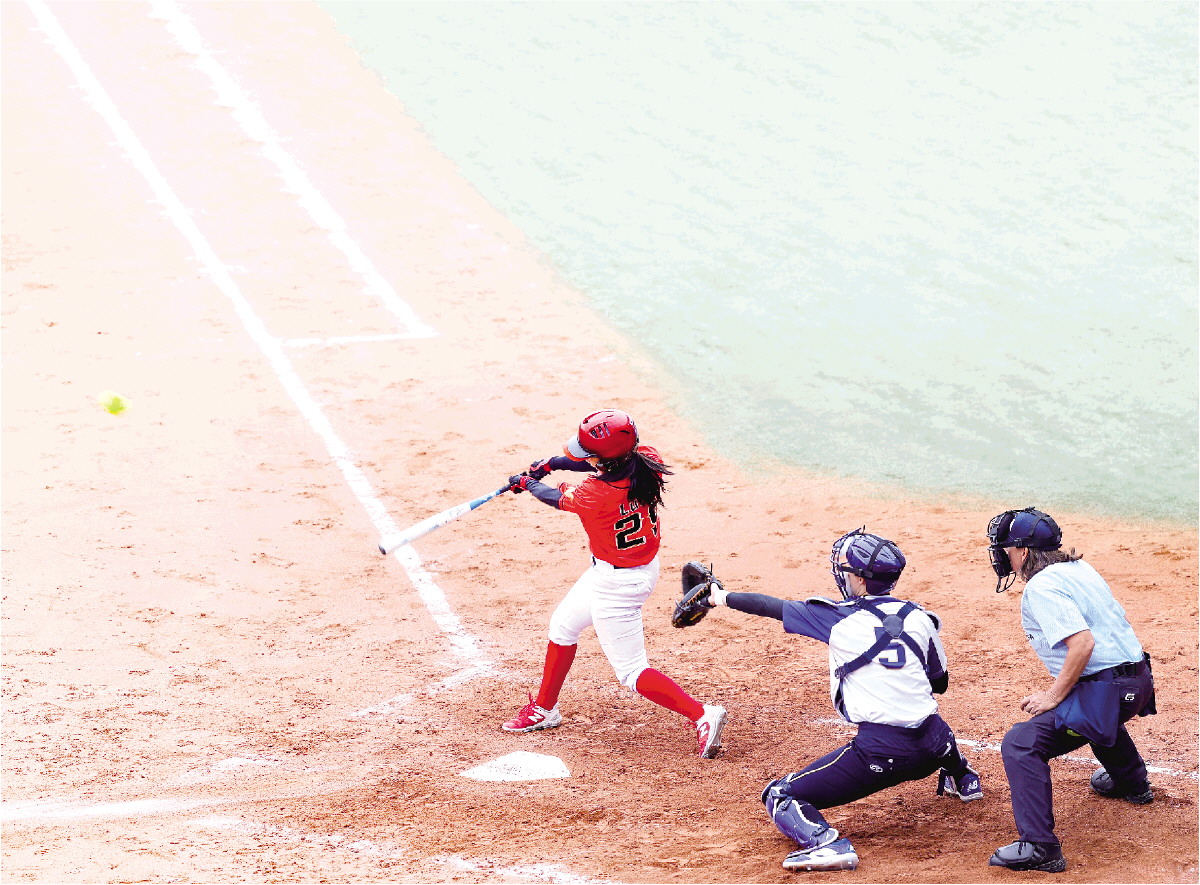 十五运会垒球项目比赛现场,图为广东队对阵四川队。 通讯员 小榄宣 供图