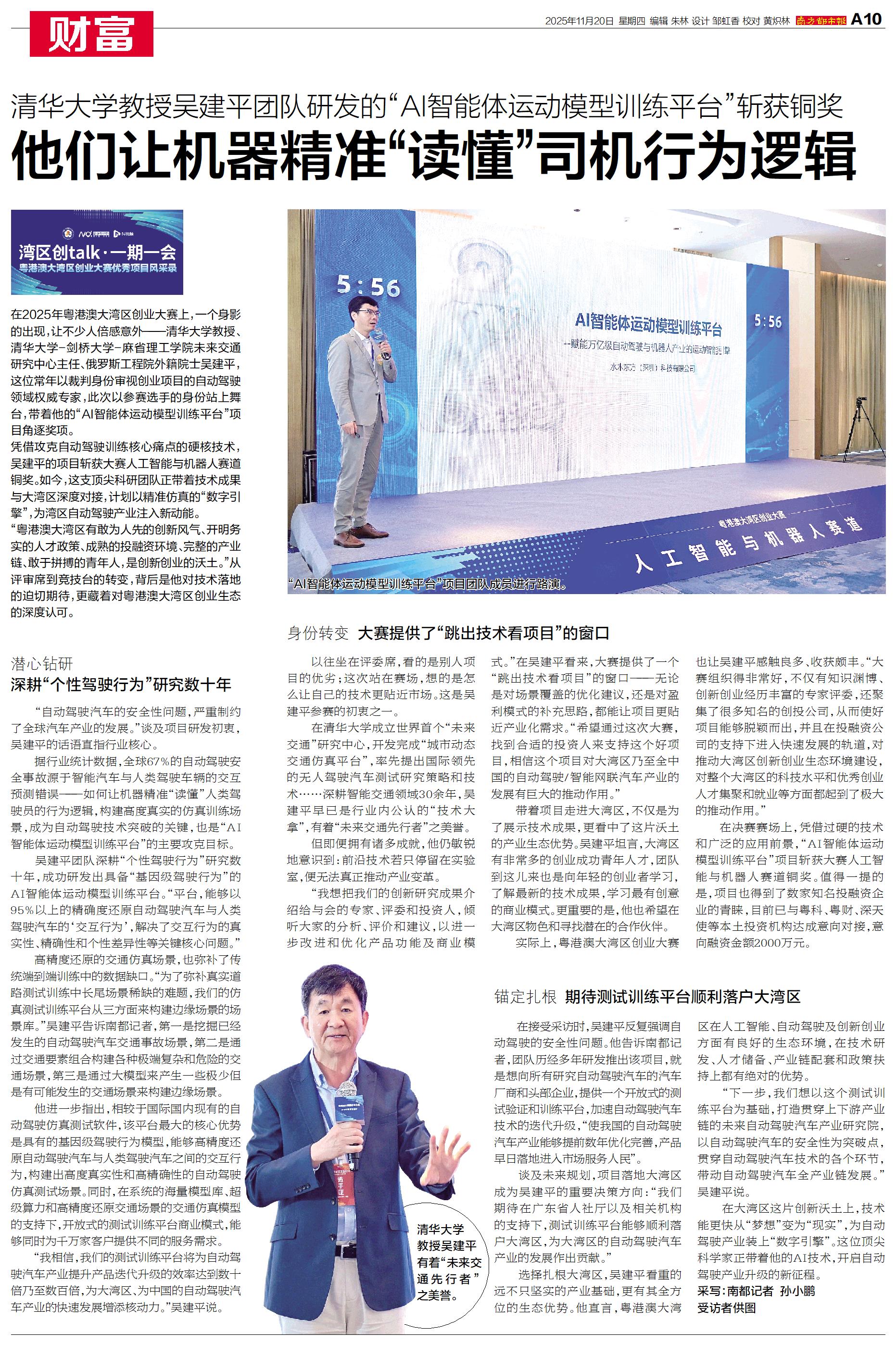 “粤港澳大湾区有敢为人先的创新风气、开明务实的人才政策、成熟的投融资环境、完整的产业链、敢于拼搏的青年人,是创新创业的沃土。”