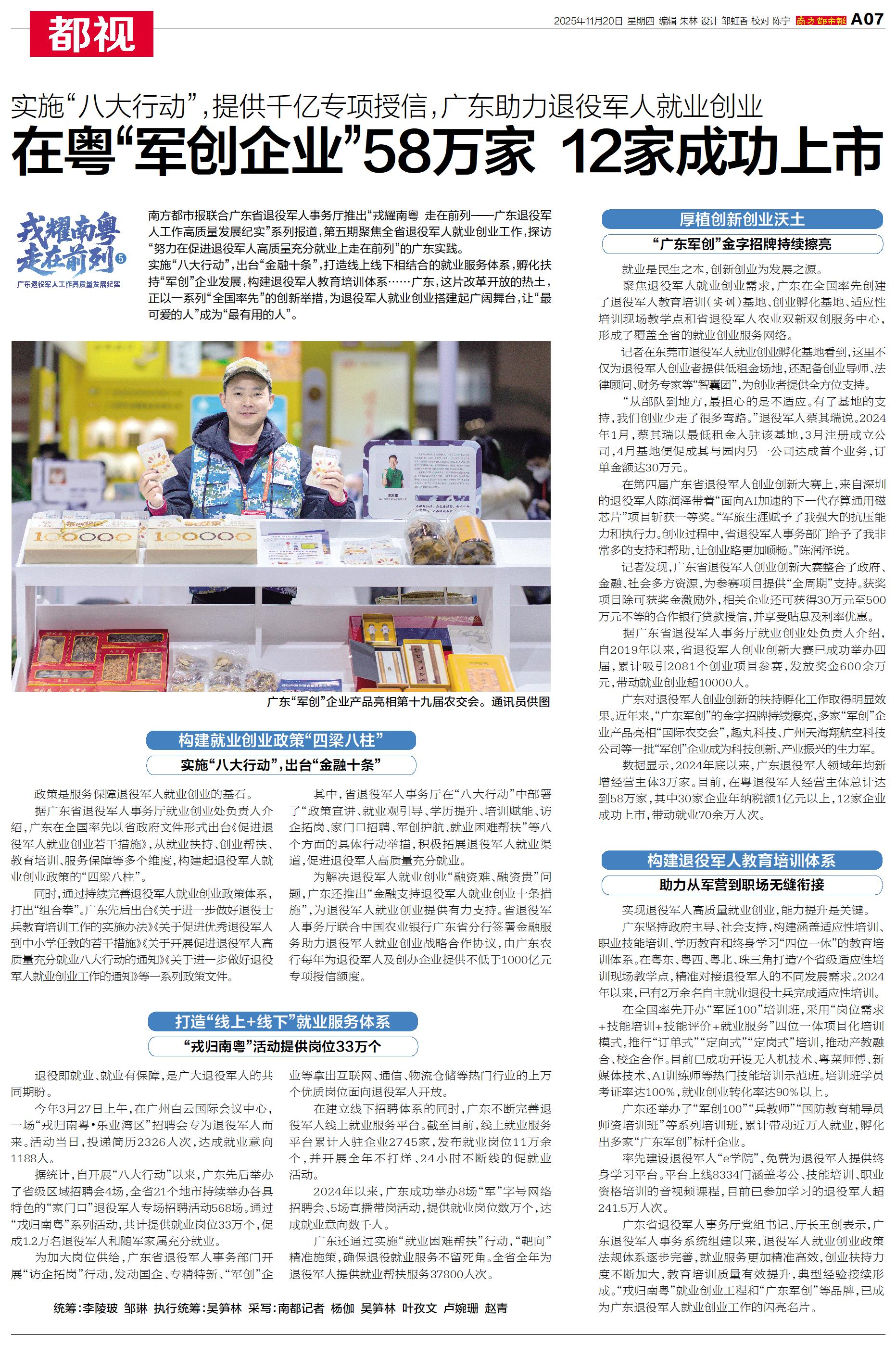 广东,这片改革开放的热土,正以一系列“全国率先”的创新举措,为退役军人就业创业搭建起广阔舞台,让“最可爱的人”成为“最有用的人”。