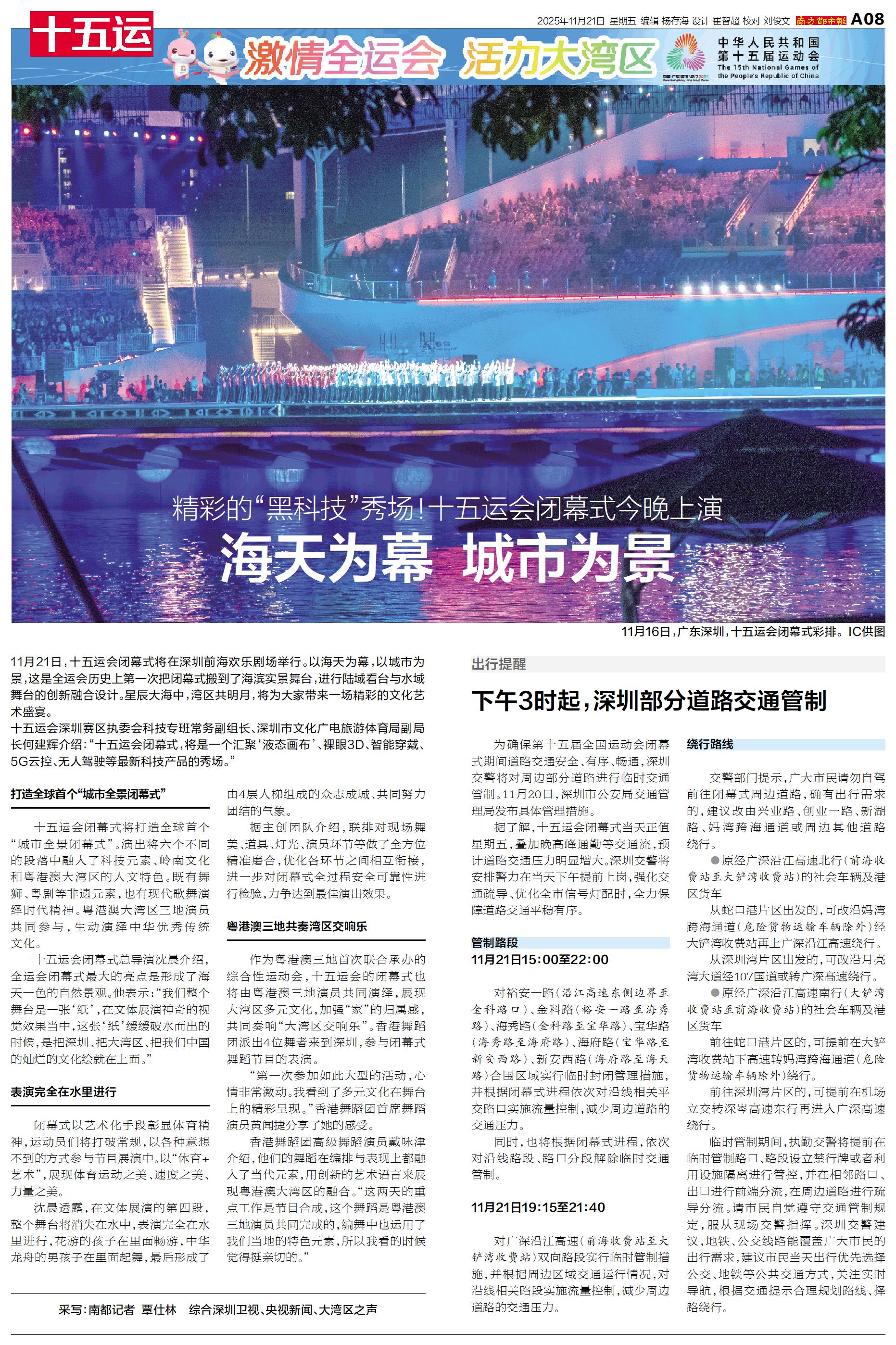 11月21日,十五运会闭幕式将在深圳前海欢乐剧场举行。