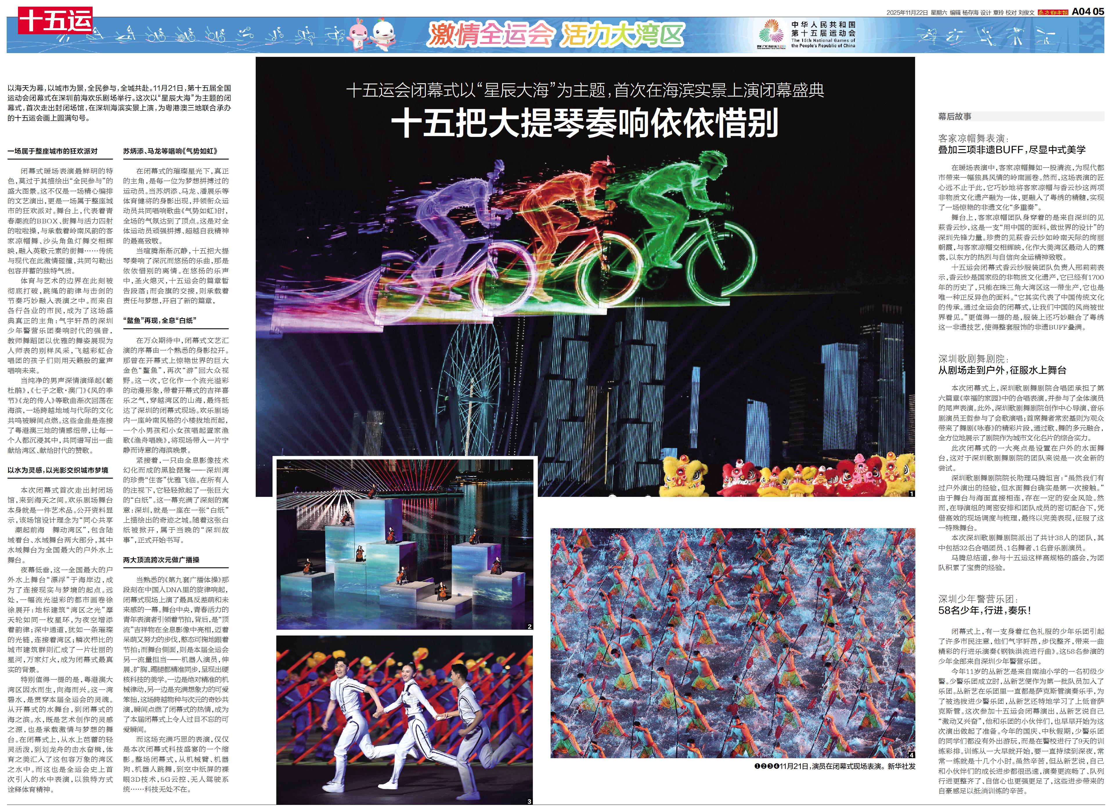 以海天为幕,以城市为景,全民参与,全城共赴。11月21日,第十五届全国运动会闭幕式在深圳前海欢乐剧场举行。