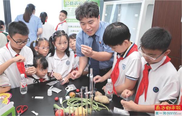 浙江湖州市吴兴区人民检察院检察官带领小学生参观未成年人检察办案区、公益诉讼快速检验实验室等,以增强学生们的自我保护意识。 新华社资料图