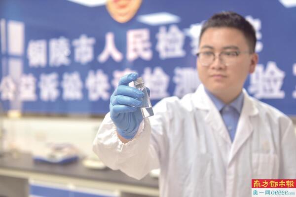 安徽省铜陵市人民检察院干警在辖区某水域进行采样取证,并利用公益诉讼快速检测实验室设备进行检测。 IC供图