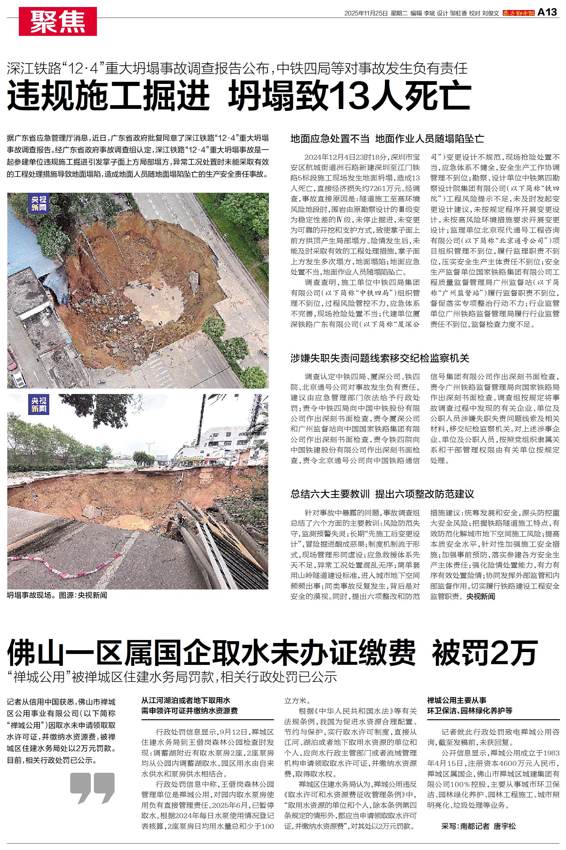 据广东省应急管理厅消息,近日,广东省政府批复同意了深江铁路“12·4”重大坍塌事故调查报告。