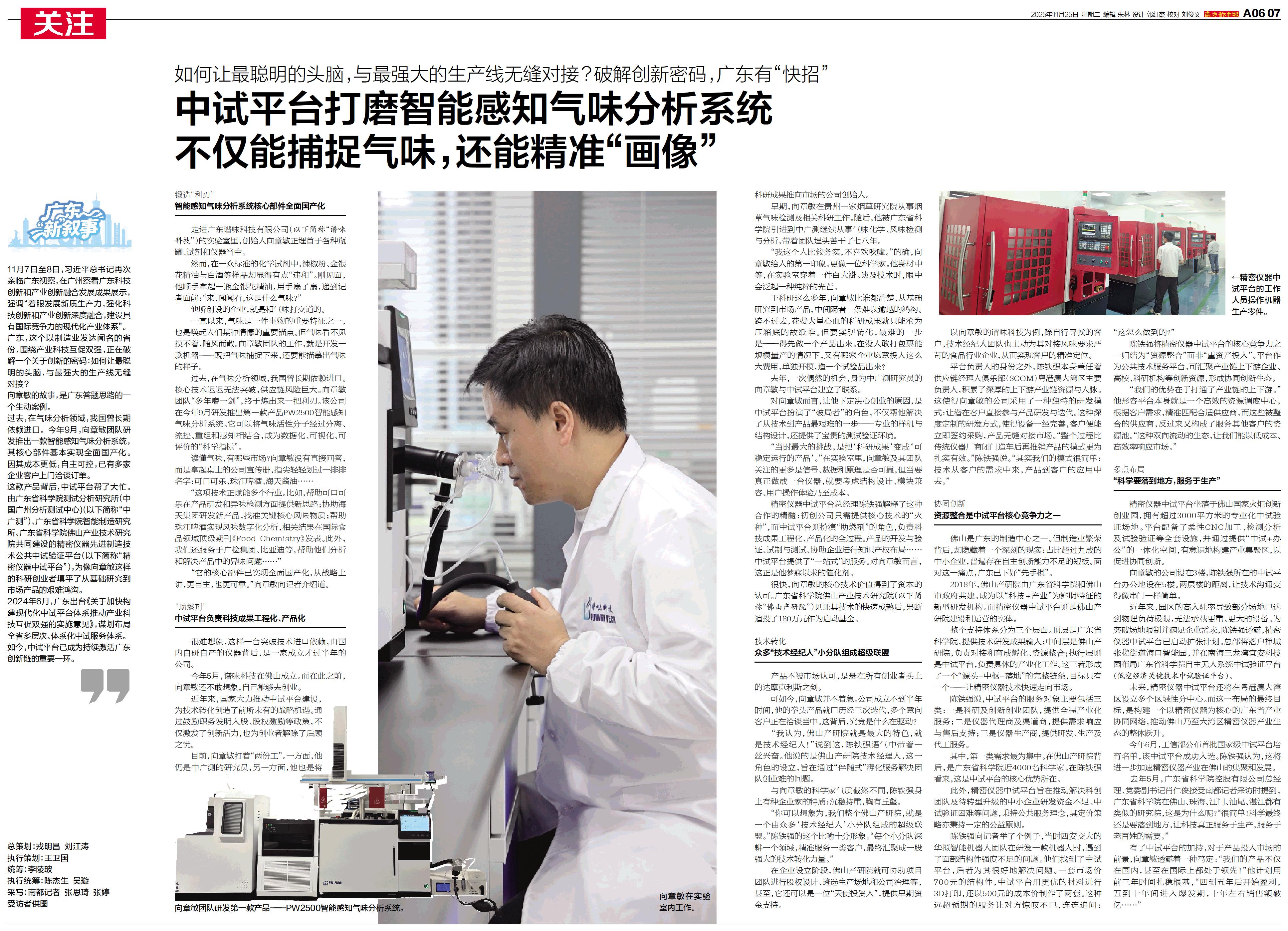 中试平台打磨智能感知气味分析系统 不仅能捕捉气味,还能精准“画像”
