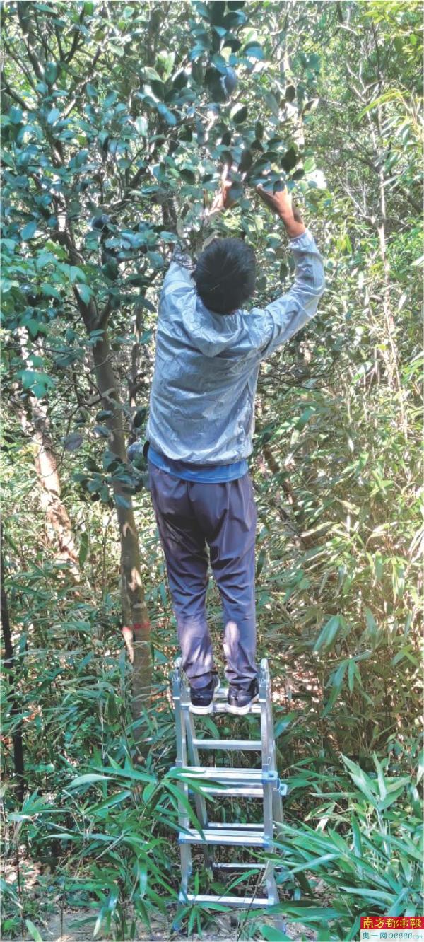中国科学院华南植物园生物多样性与生态安全研究团队在象头山开展博罗红豆枝条高压繁殖实验。