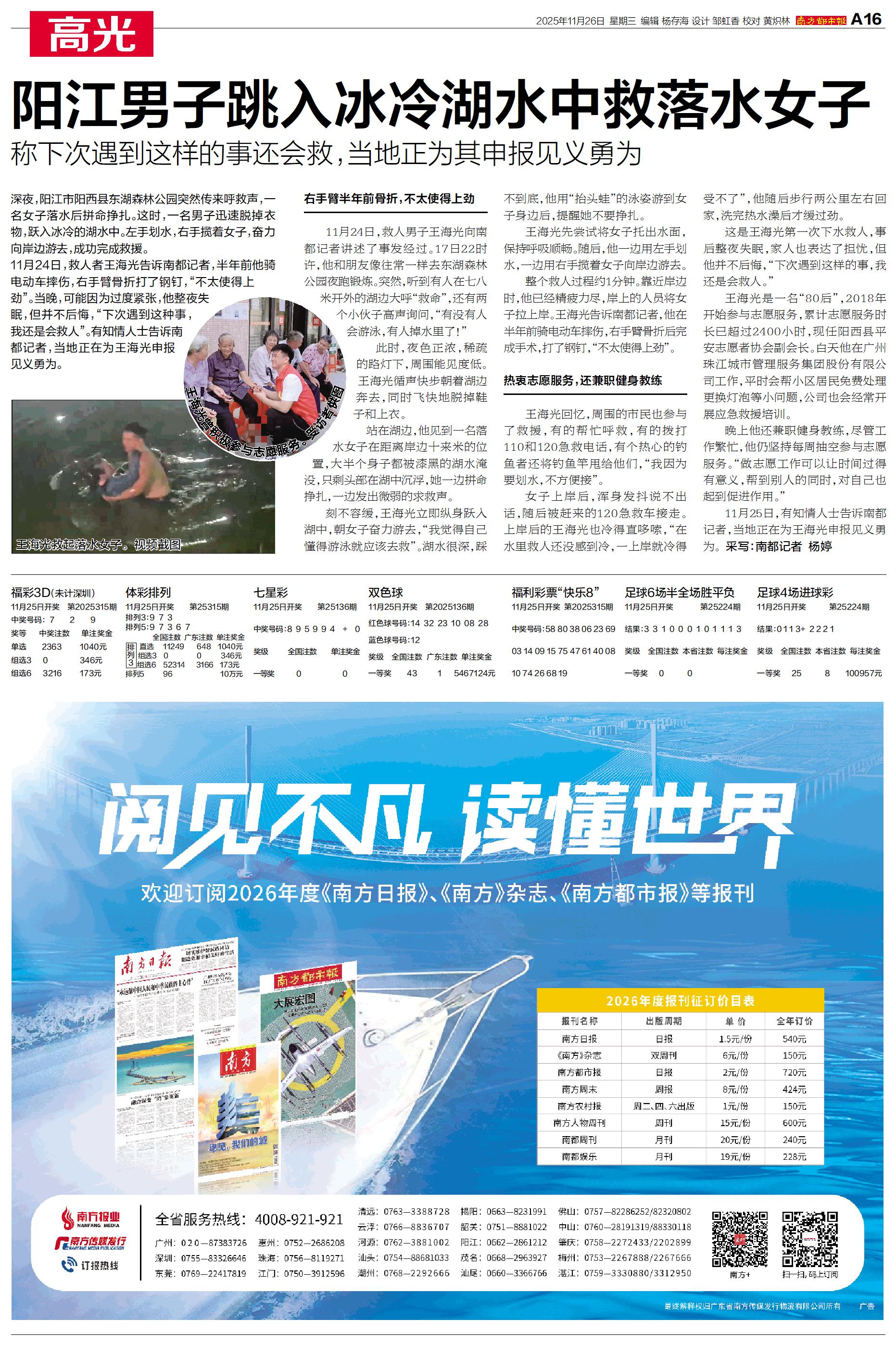 阳江男子跳入冰冷湖水中救落水女子