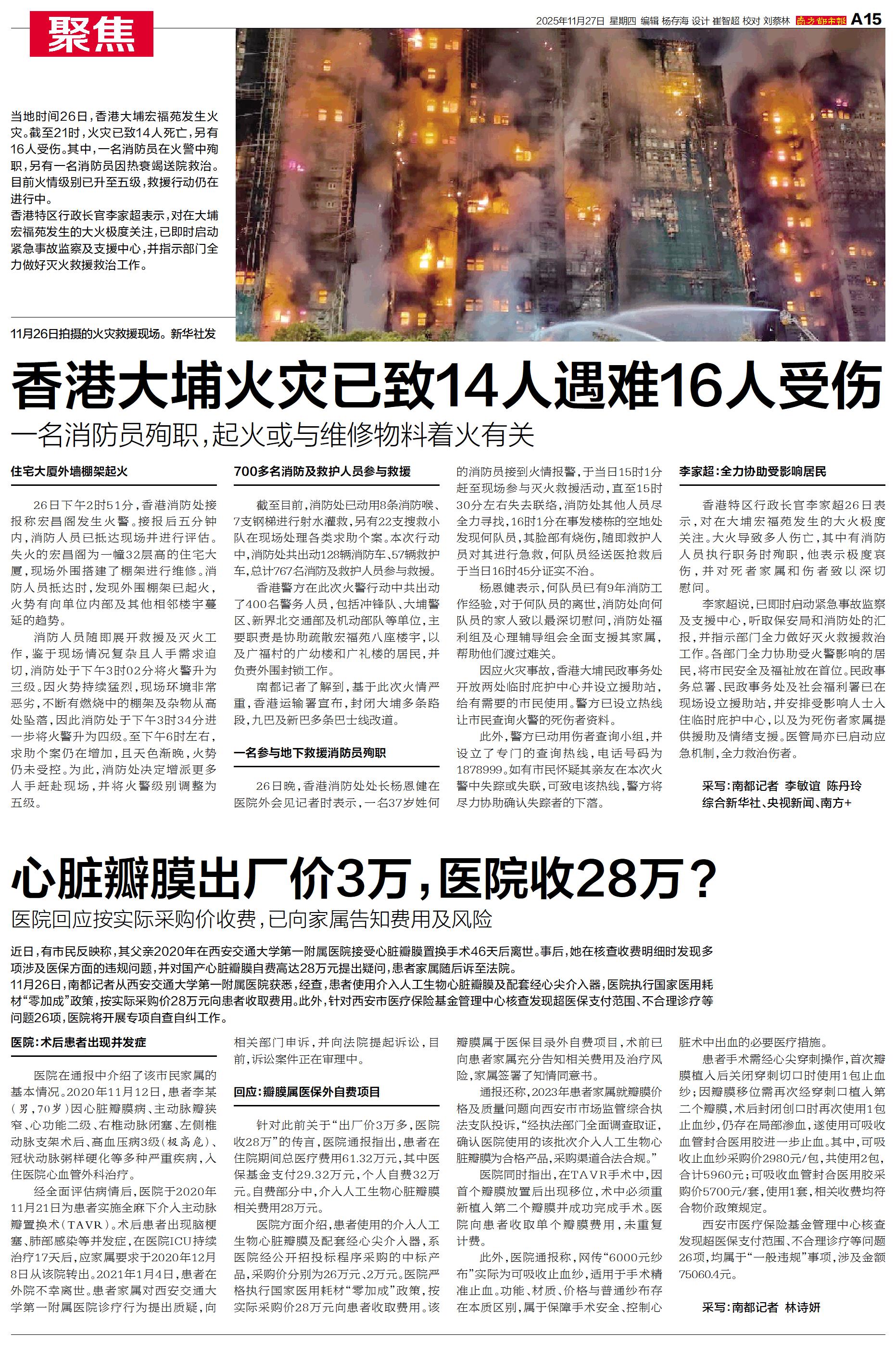 香港大埔火灾已致14人遇难16人受伤