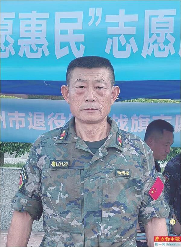 据了解,杨清松今年57岁,是一名退役军人,曾在1984年至1988年间服役,退役后在惠州从事小生意维持生计。此外,他还是惠州市退役军人战旗志愿服务总队应急救援队一员,平时积极投身于各类公益事业中。