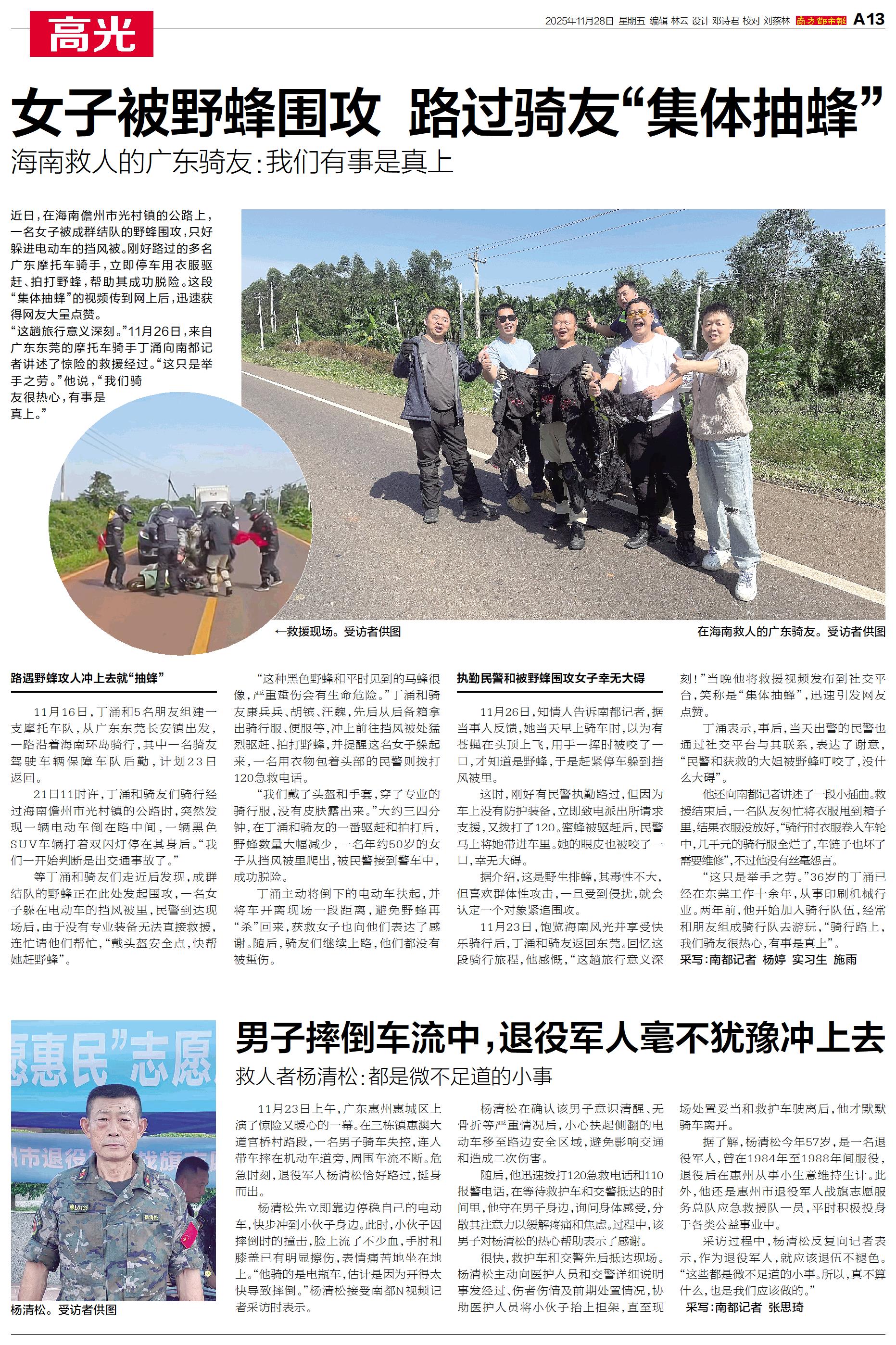 女子被野蜂围攻 路过骑友“集体抽蜂”