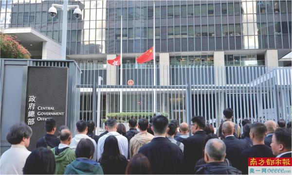同日上午,中央政府驻香港联络办、驻港国家安全公署、外交部驻港特派员公署、解放军驻港部队等也举行下半旗和默哀仪式。