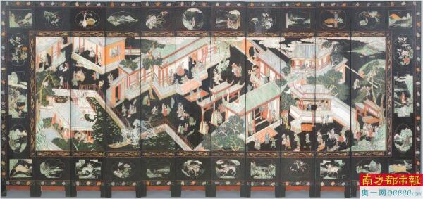 白芳表示,广作外销漆器的髹漆工艺多采用款彩和描金两种装饰技法。17-18世纪,款彩屏风经欧洲改造后成为“漆屋”装饰的核心,奥地利女皇玛丽亚·特雷西亚,曾直言“漆器是唯一让我快乐的东西”。风靡欧洲的广作外销漆器中,最为引人注目的是款彩漆屏风,它们被运往欧洲后,经拆解、裁切、镶嵌和重组,以一种崭新的方式被使用,推动了欧洲“漆屋”风尚的流行。18-19世纪,广作描金漆器,尤其是黑漆描金漆器,大量外销海外。它们富丽堂皇、华贵典雅,承载着西方人对东方的美好憧憬和对异域优雅品位的追慕。