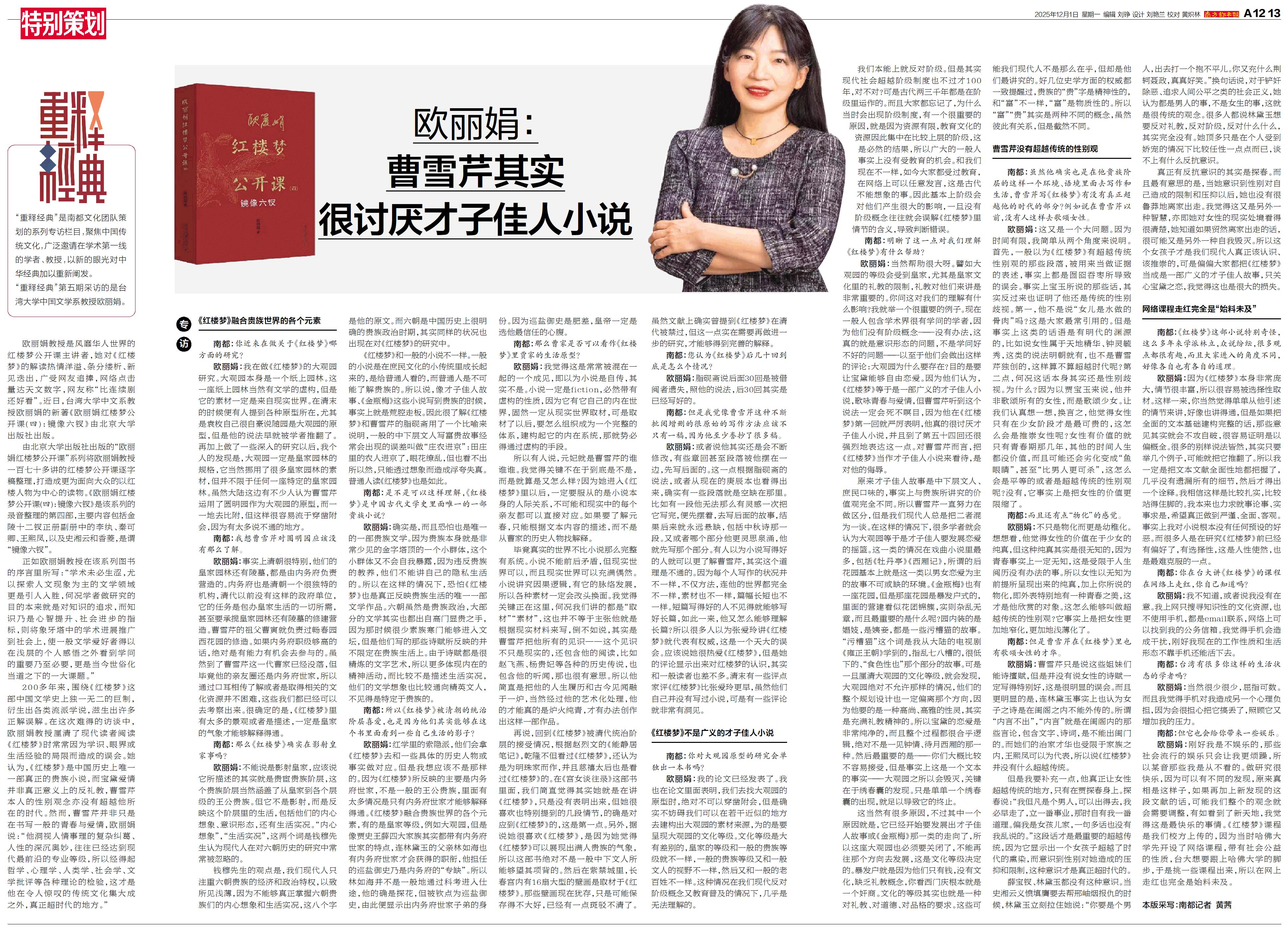欧丽娟:曹雪芹其实很讨厌才子佳人小说