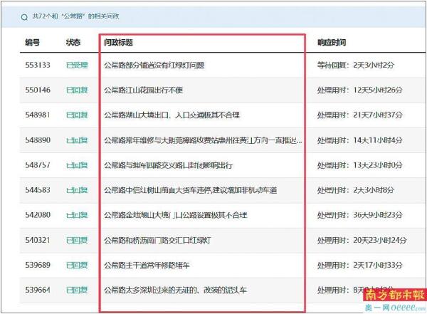 近年来,东莞阳光问政平台上出现多条关于公常路的问政内容。