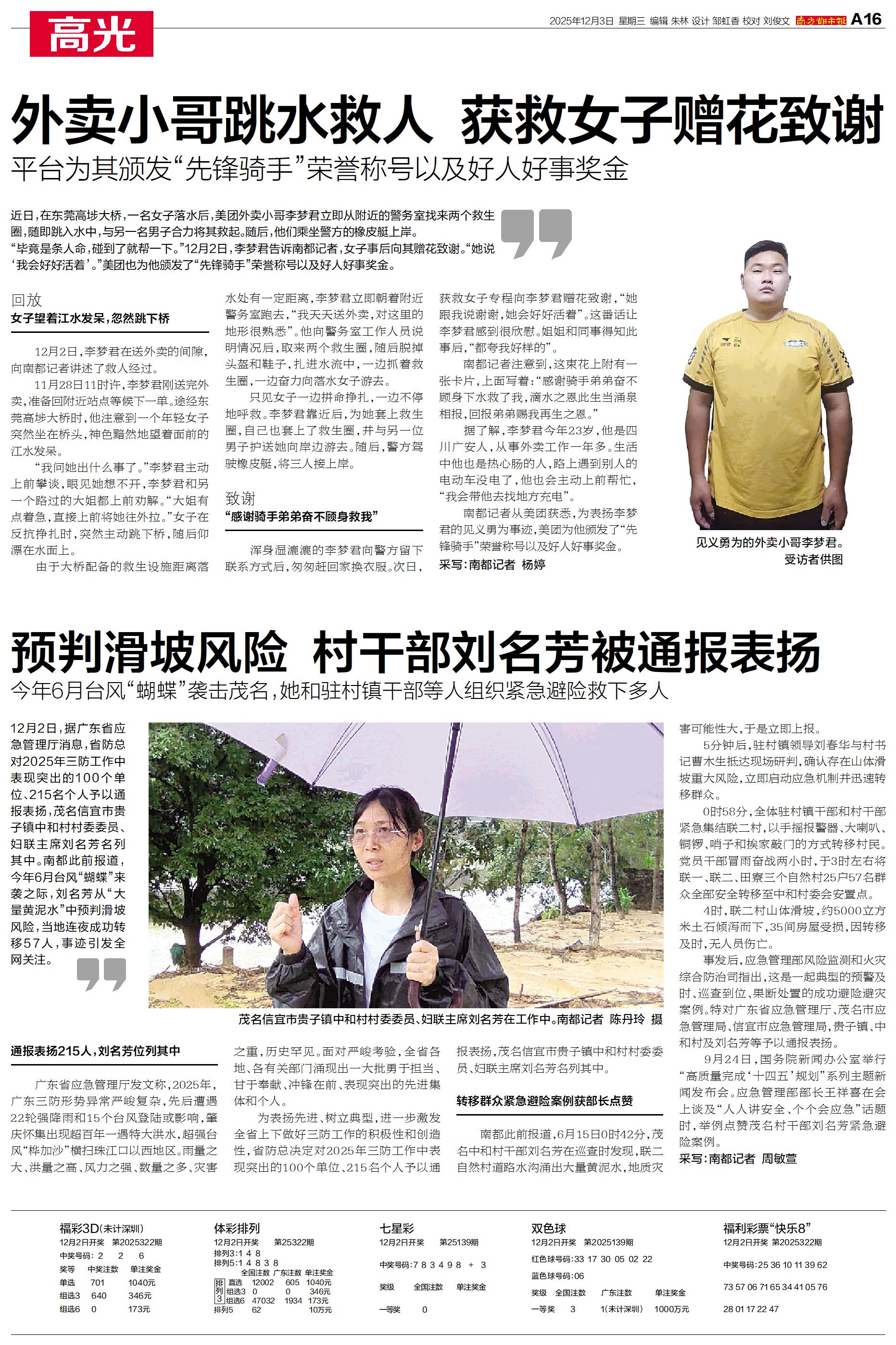 12月2日,据广东省应急管理厅消息,省防总对2025年三防工作中表现突出的100个单位、215名个人予以通报表扬,茂名信宜市贵子镇中和村村委委员、妇联主席刘名芳名列其中。