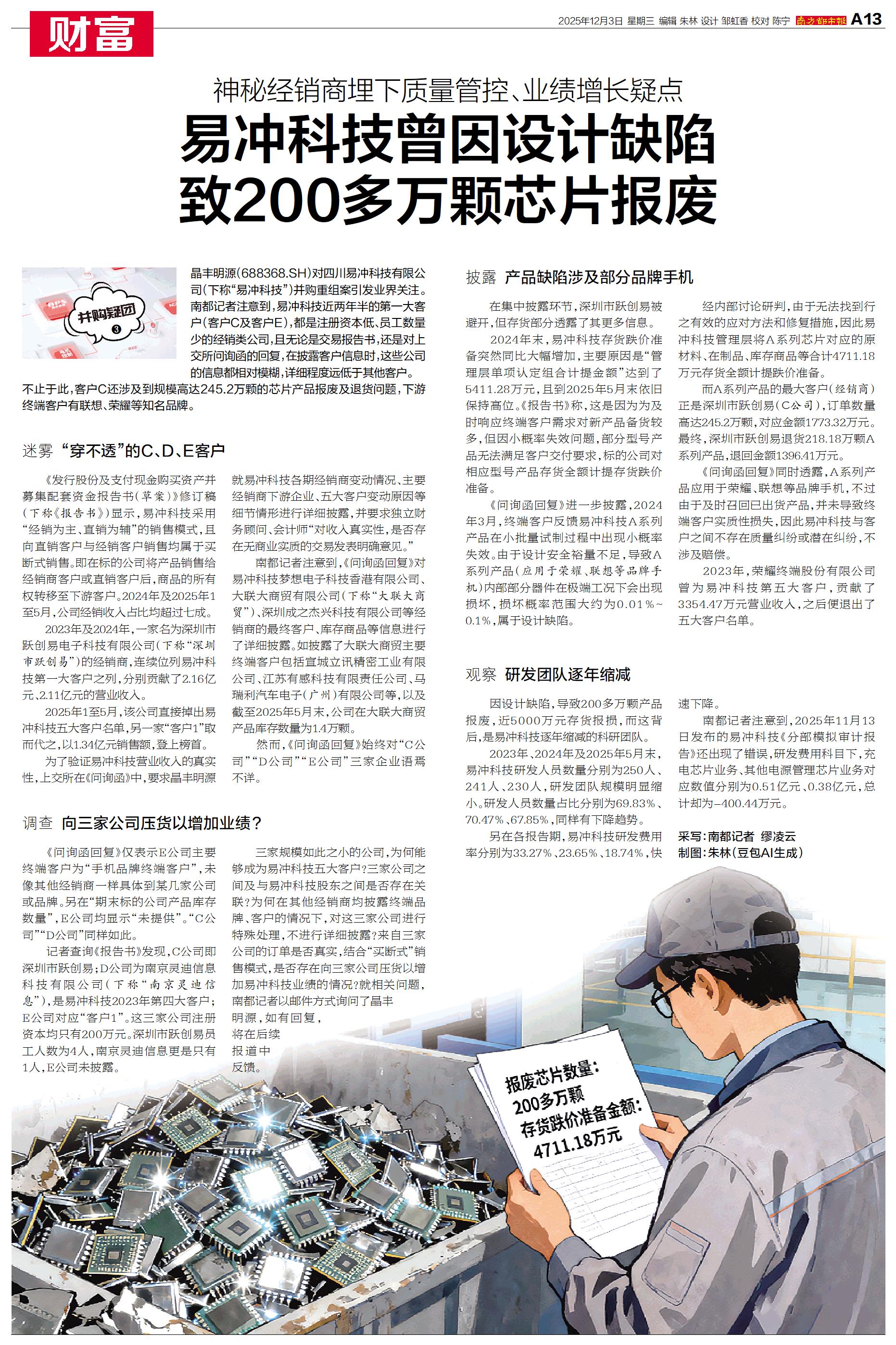 易冲科技曾因设计缺陷 致200多万颗芯片报废