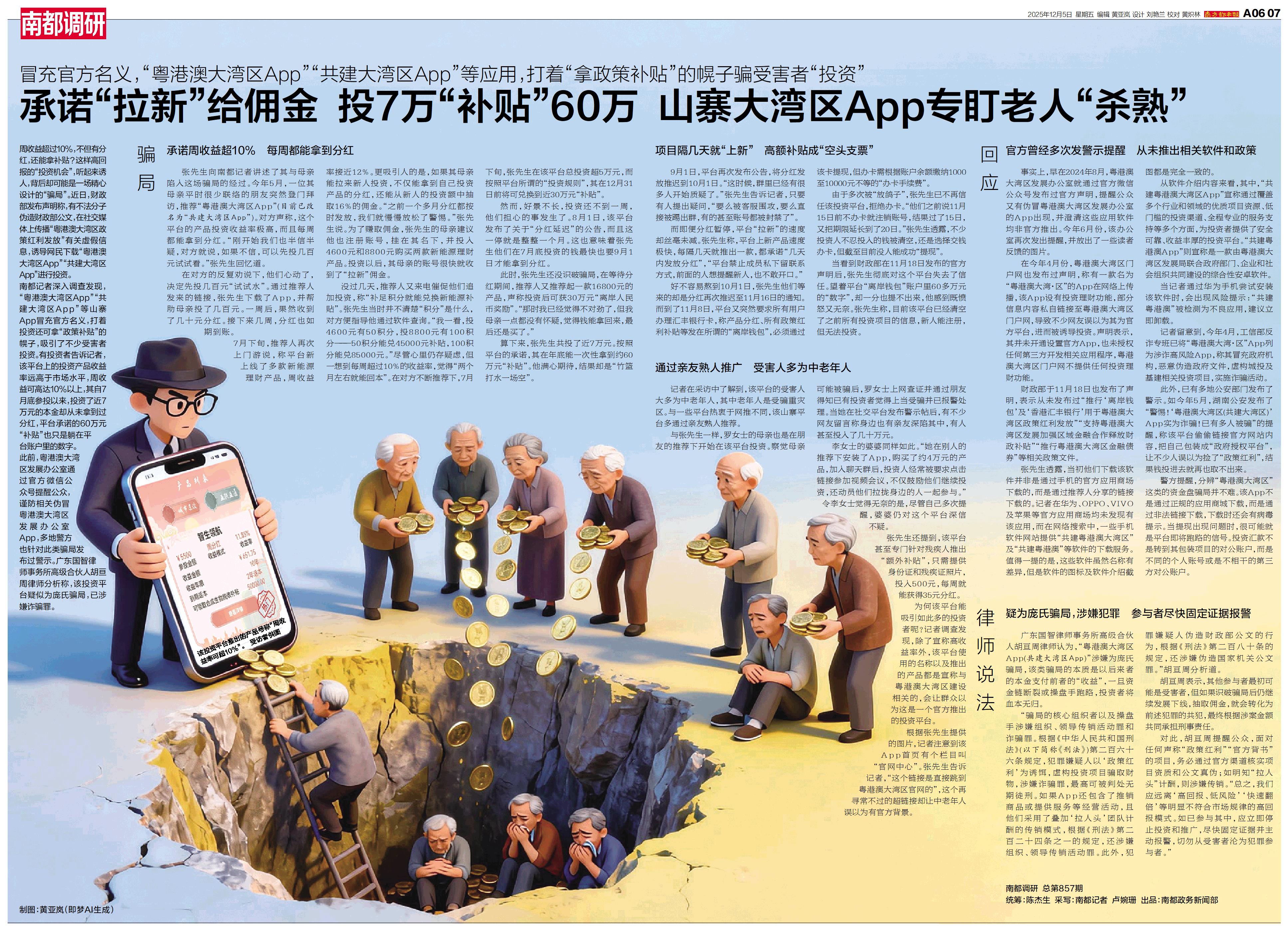 承诺“拉新”给佣金 投7万“补贴”60万 山寨大湾区App专盯老人“杀熟”