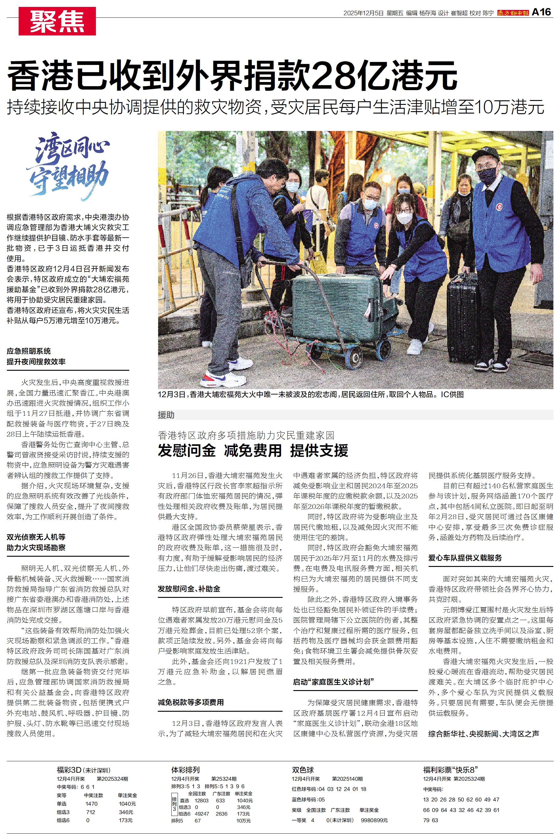 根据香港特区政府需求,中央港澳办协调应急管理部为香港大埔火灾救灾工作继续提供护目镜、防水手套等最新一批物资,已于3日运抵香港并交付使用。