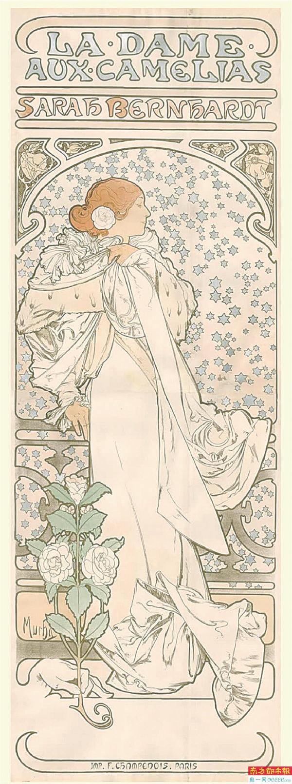 阿尔丰斯·穆夏为巴黎传奇女演员莎拉·伯恩哈特设计的《茶花女》戏剧海报。