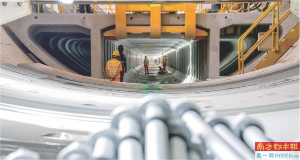 11月23日,施工人员在广(广州站)南(广州南站)联络线西塱隧道吊运隧道箱涵。该项目建成后,广州大都会交通枢纽功能将进一步增强。 新华社发