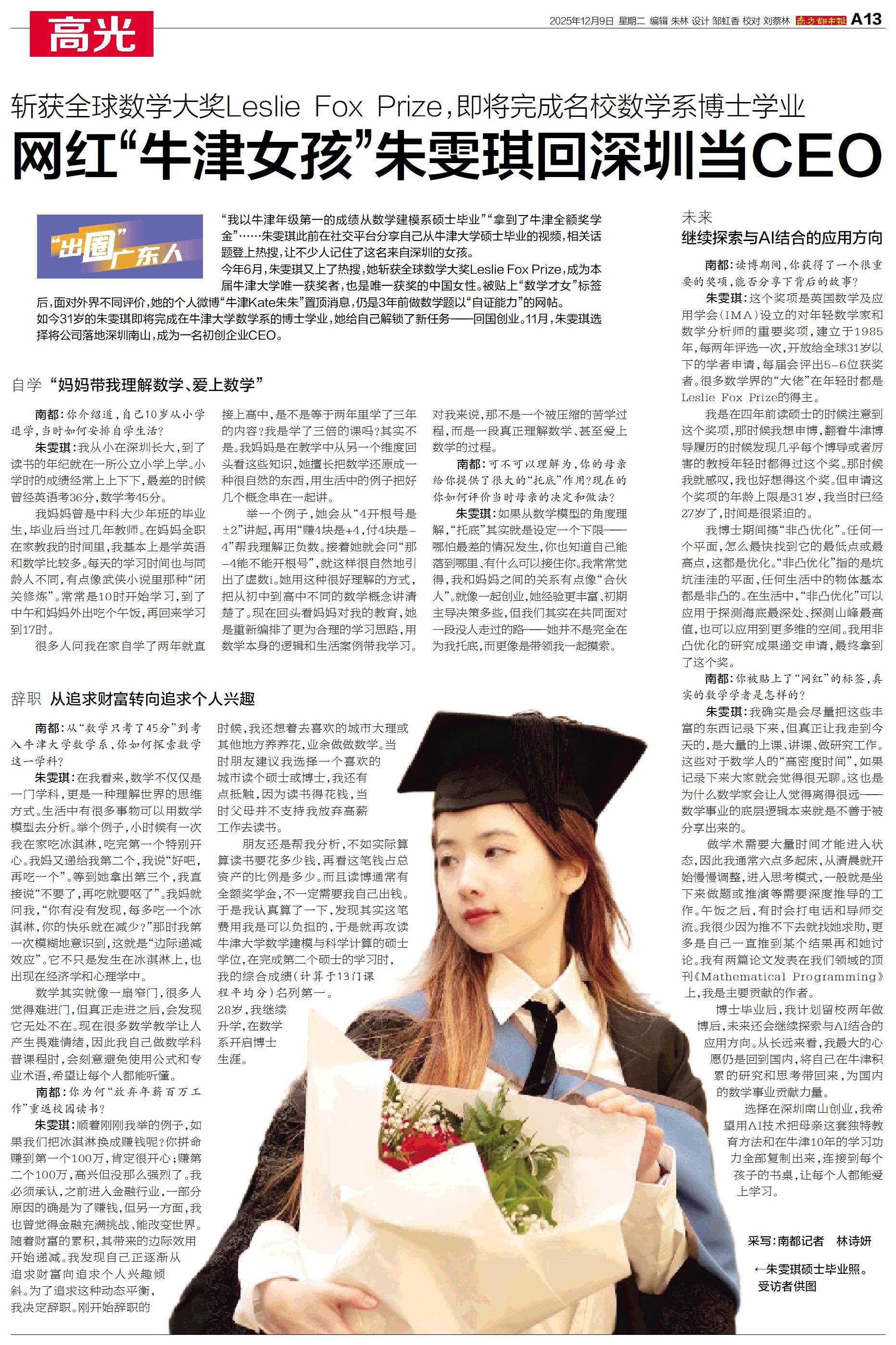 网红“牛津女孩”朱雯琪回深圳当CEO