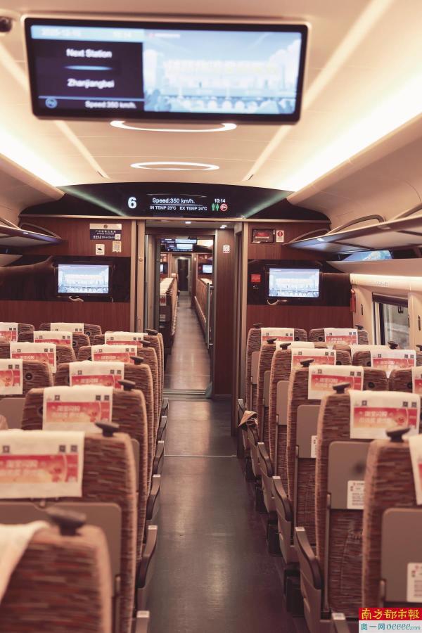 广湛高铁试运行列车内部。