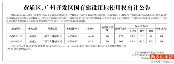 黄埔区、广州开发区国有建设用地使用权出让公告