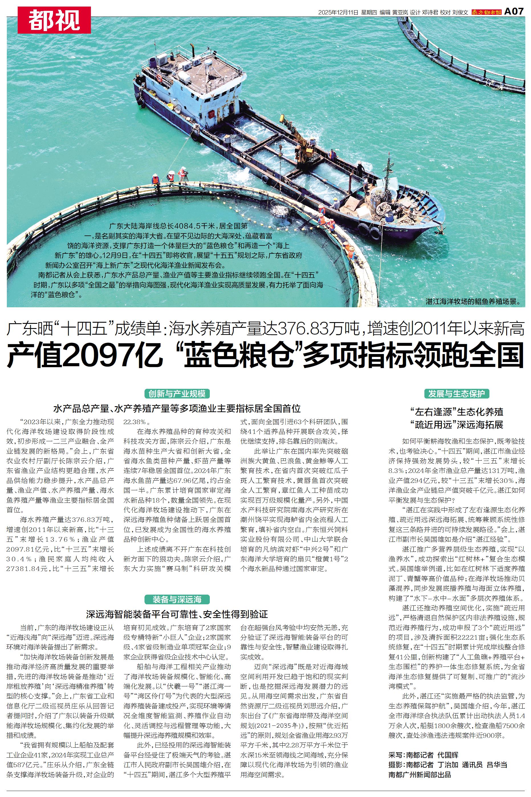 12月9日,在“十四五”即将收官,展望“十五五”规划之际,广东省政府新闻办公室召开“海上新广东”之现代化海洋渔业新闻发布会。