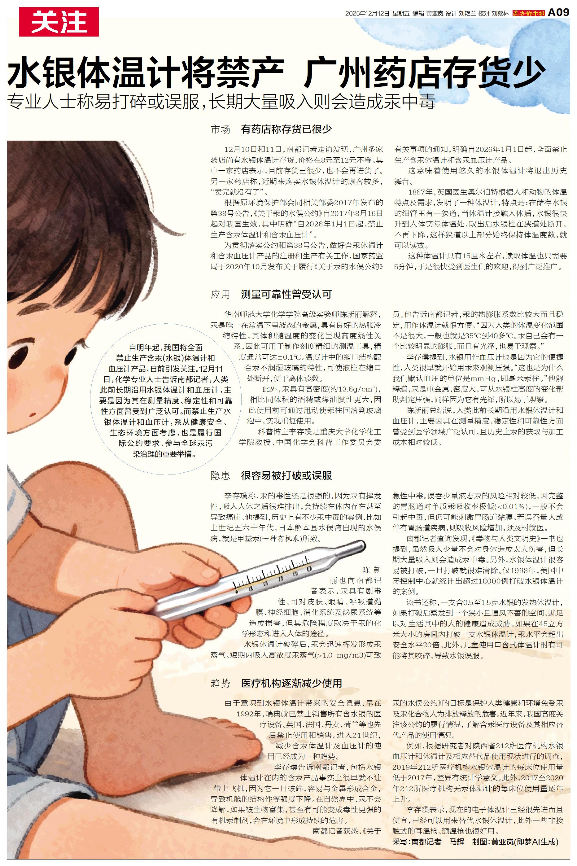 自明年起,我国将全面禁止生产含汞(水银)体温计和血压计产品,日前引发关注。