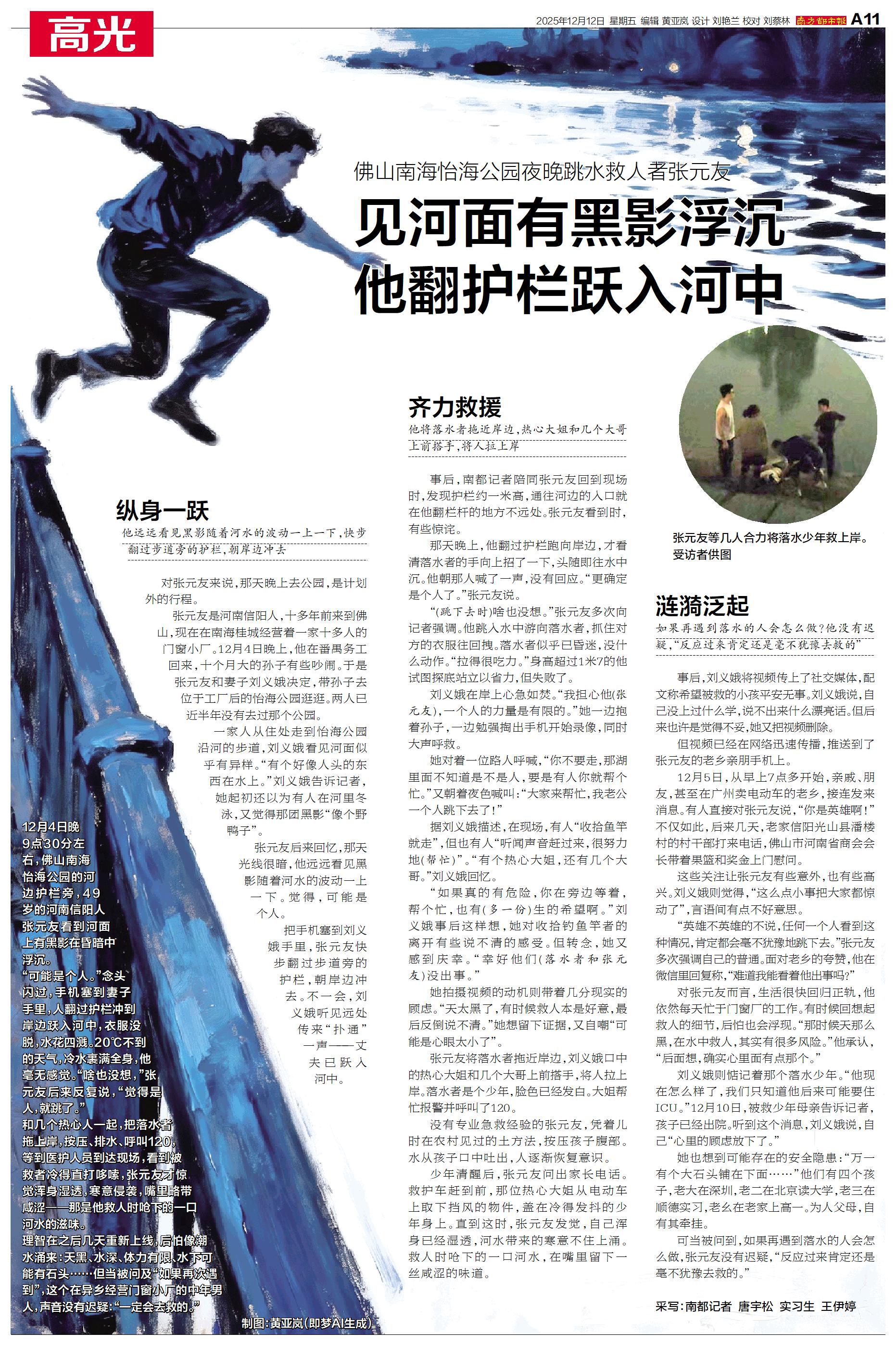 12月4日晚9点30分左右,佛山南海怡海公园的河边护栏旁,49岁的河南信阳人张元友看到河面上有黑影在昏暗中浮沉。