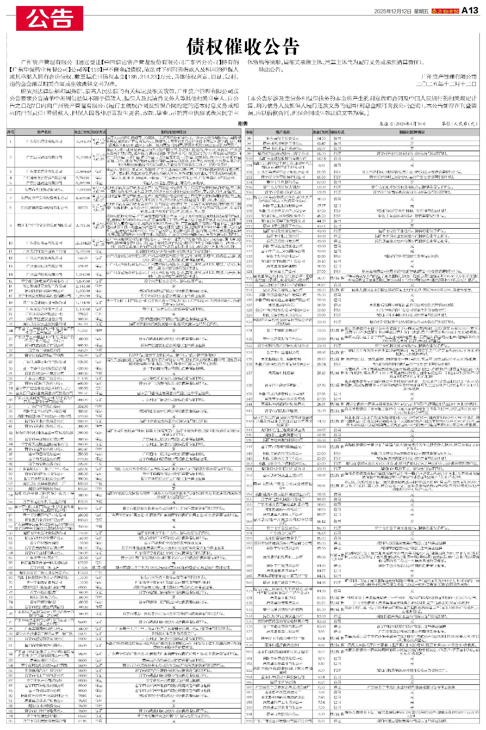 债权催收公告