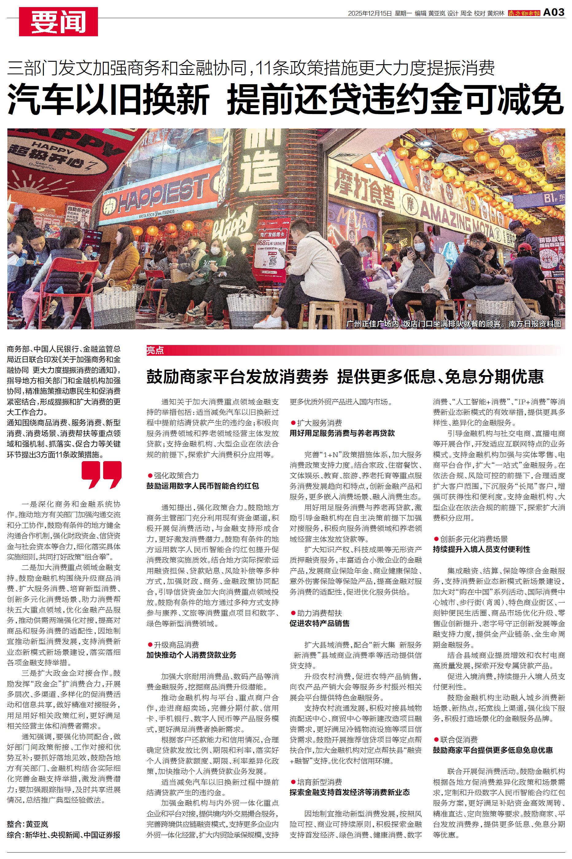 鼓励商家平台发放消费券 提供更多低息、免息分期优惠