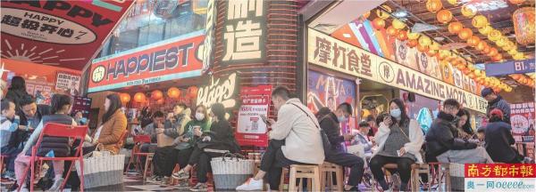 广州正佳广场内,饭店门口坐满排队就餐的顾客。 南方日报资料图