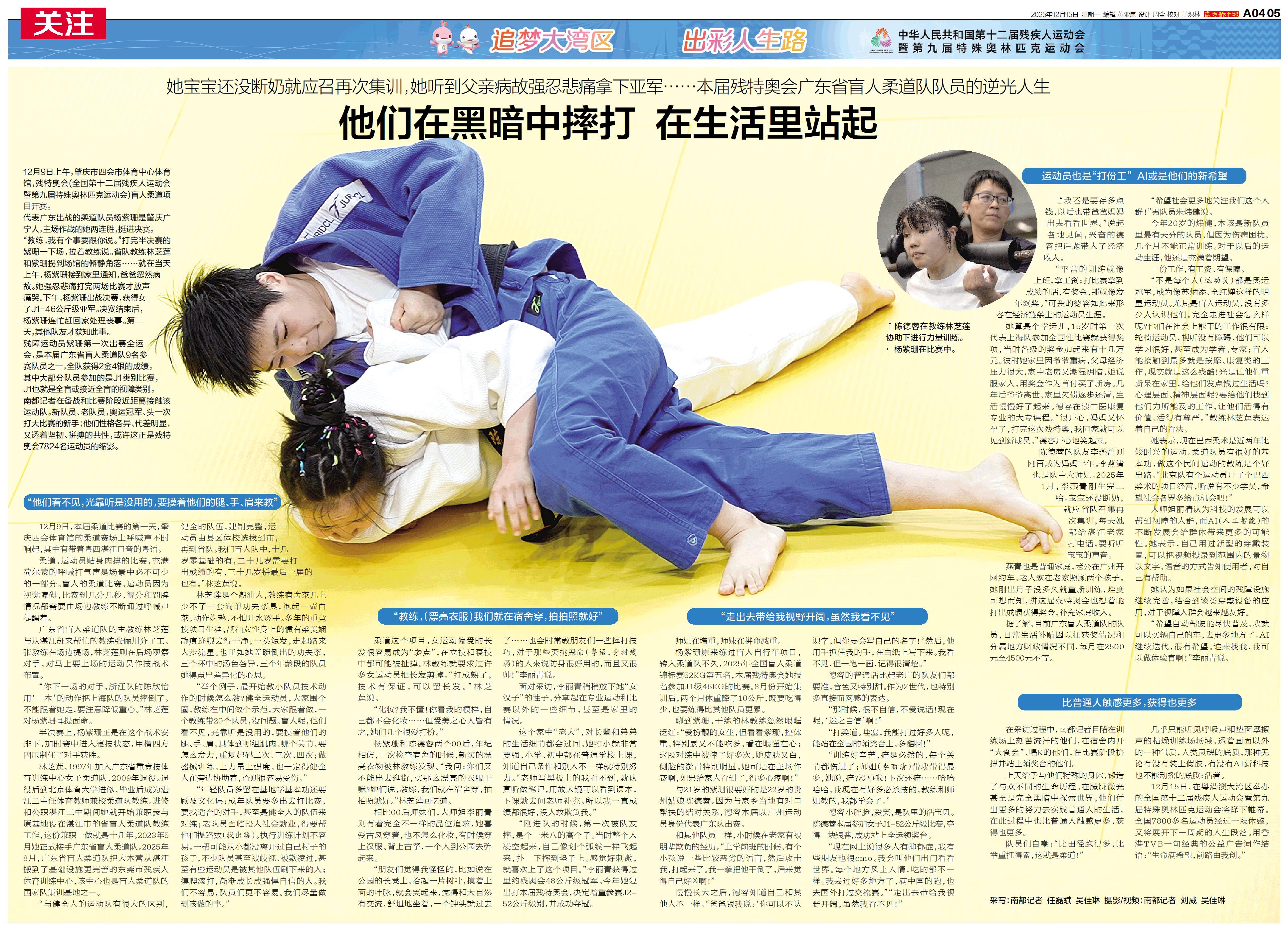 12月9日上午,肇庆市四会市体育中心体育馆,残特奥会(全国第十二届残疾人运动会暨第九届特殊奥林匹克运动会)盲人柔道项目开赛。