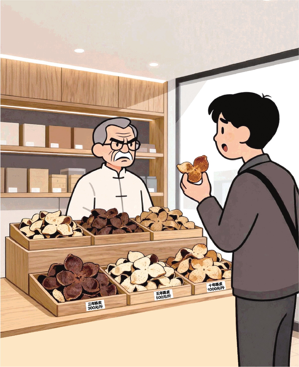 年份虚标 同一批“工艺皮”因加工受热差异形成色差,分拣标注不同年份,利润超成本十倍以上