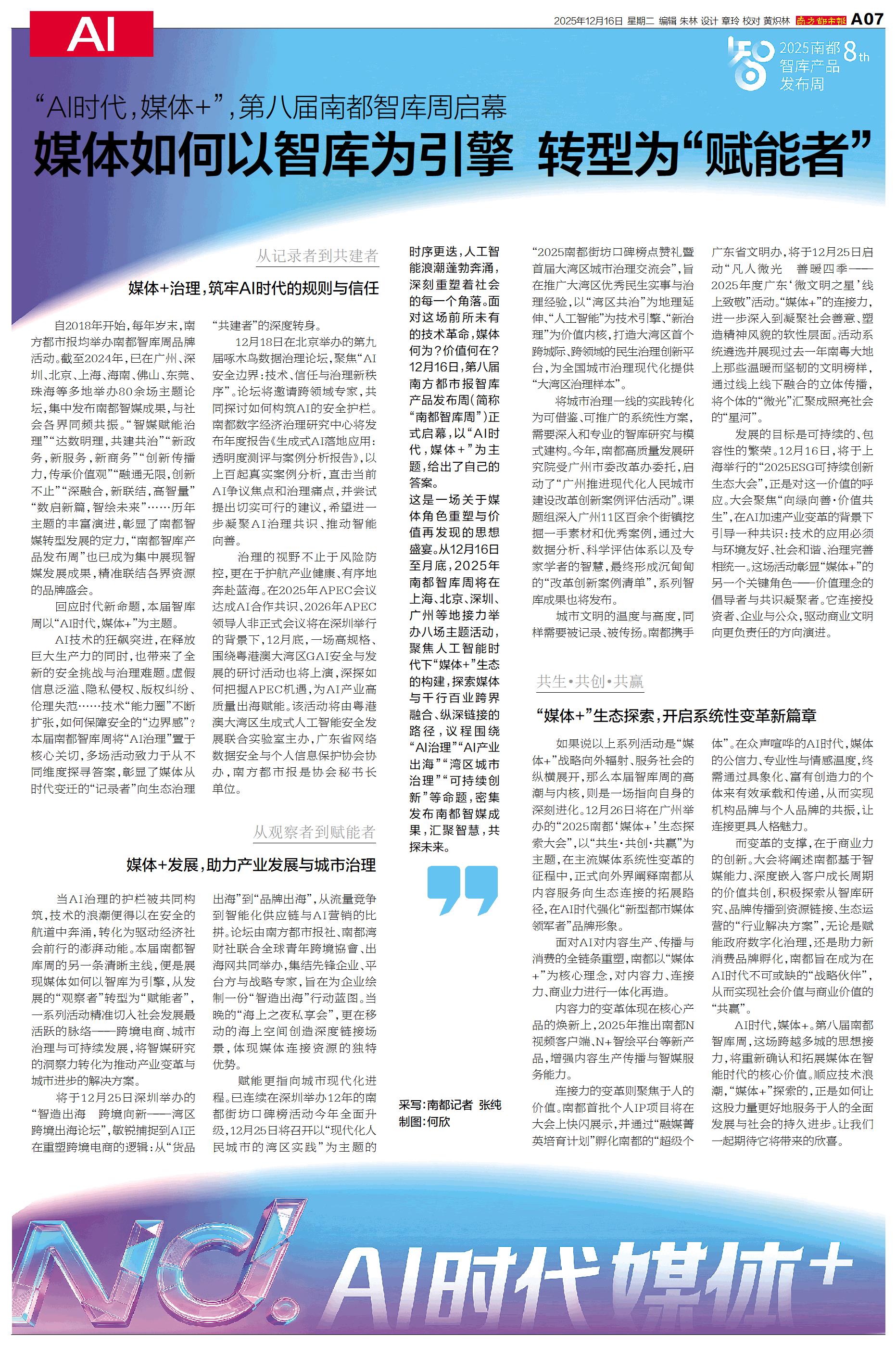 12月16日,第八届南方都市报智库产品发布周(简称“南都智库周”)正式启幕,以“AI时代,媒体+”为主题,给出了自己的答案。