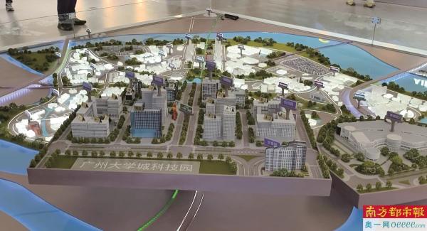 全国高校技术转移转化陆空一体化智能出行中心里,沙盘展示了广州大学城科技园全貌。