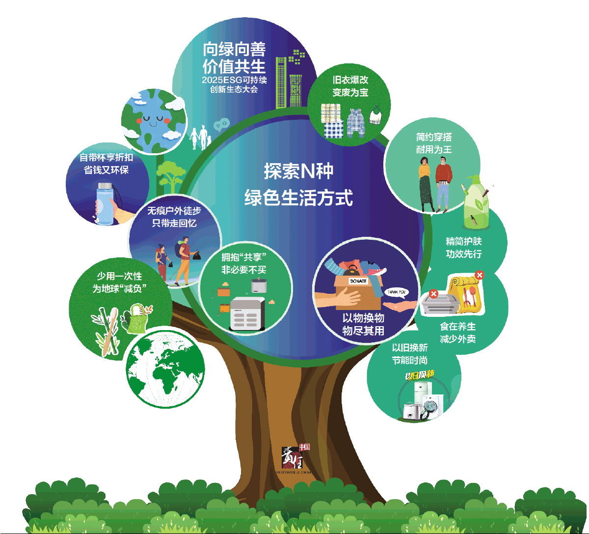 《2025 ESG可持续创新趋势洞察报告》同时披露了“2025年十大可持续绿色生活方式”。今年以来,南都记者从穿搭、饮食、居住、出行、娱乐等生活场景入手,在社交平台进行调研,并收集了一系列与可持续相关的关键词,最终整理出“2025年十大可持续绿色生活方式”。这十大可持续绿色生活方式分别是:“共享”消费、旧衣改造、以物换物、以旧换新、咖啡自带杯、绿色低碳出行、无痕徒步、极简穿搭、精简护肤和干净饮食。