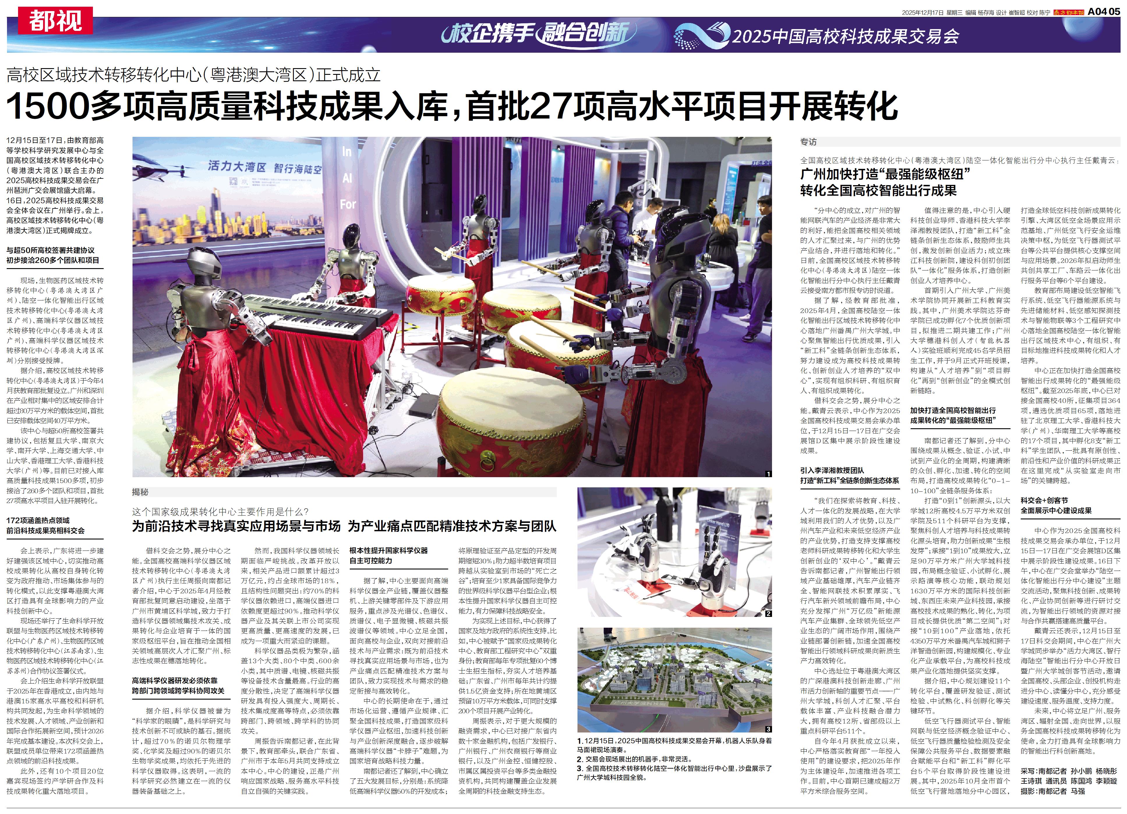 16日,2025高校科技成果交易会全体会议在广州举行。会上,高校区域技术转移转化中心(粤港澳大湾区)正式揭牌成立。