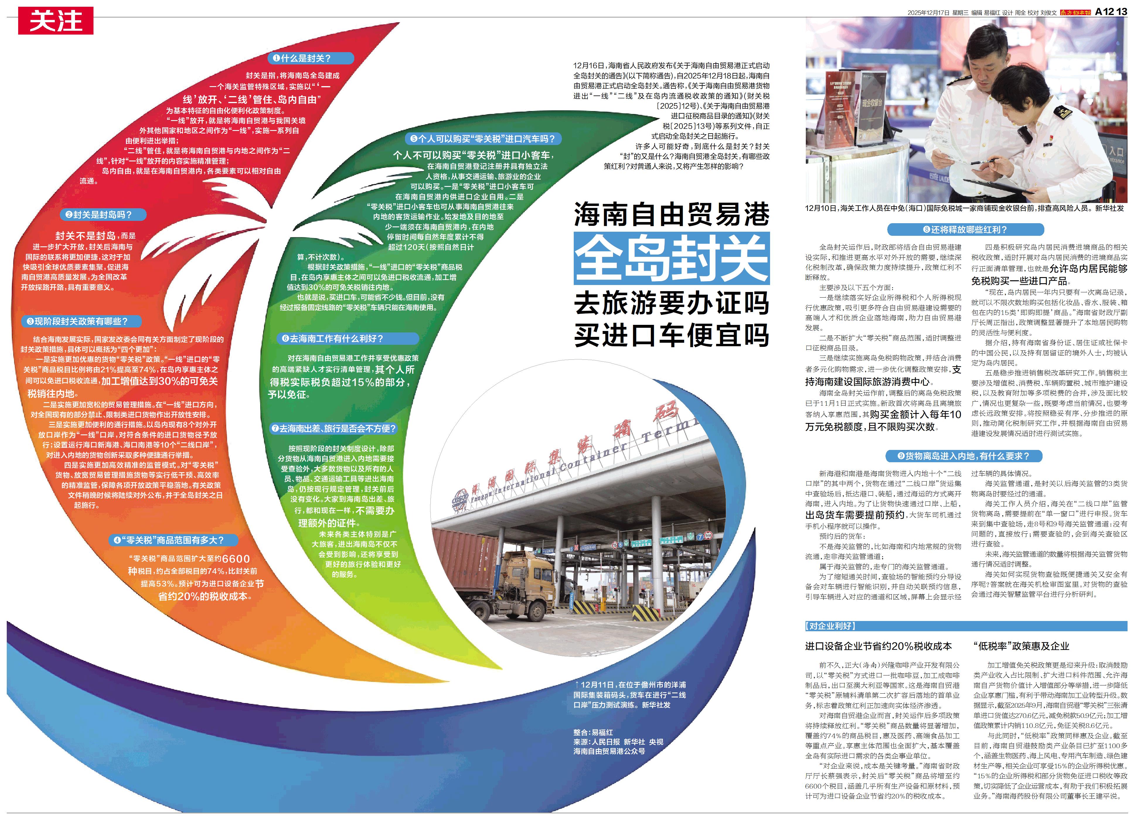 12月16日,海南省人民政府发布《关于海南自由贸易港正式启动全岛封关的通告》,自2025年12月18日起,海南自由贸易港正式启动全岛封关。