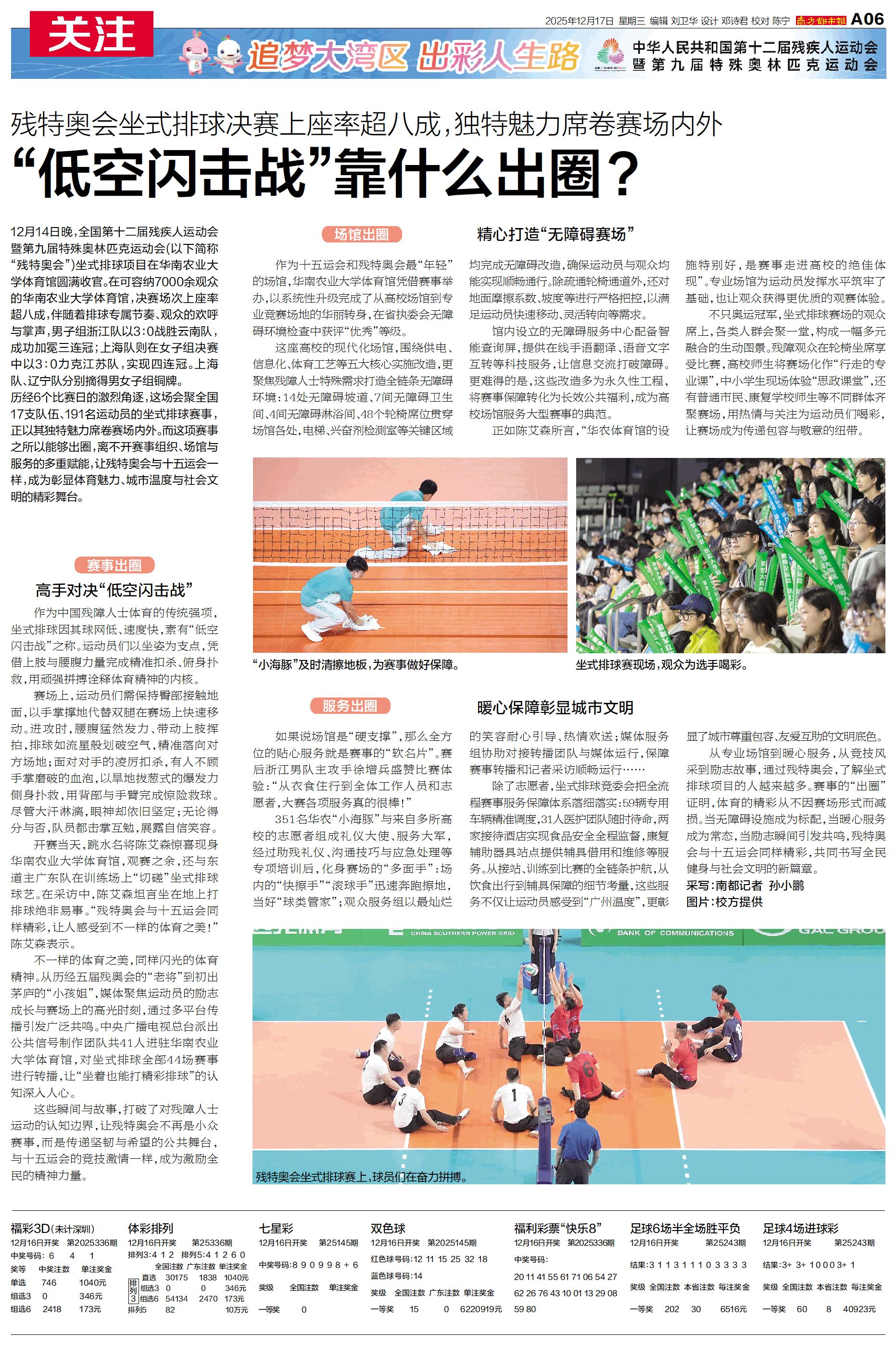 12月14日晚,全国第十二届残疾人运动会暨第九届特殊奥林匹克运动会(以下简称“残特奥会”)坐式排球项目在华南农业大学体育馆圆满收官。