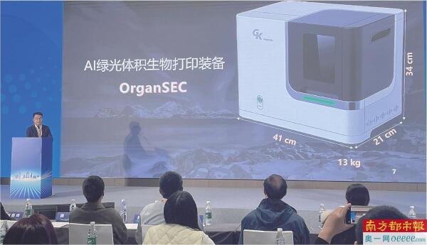 广州医科大学谢茂彬团队介绍自主研发的“秒级”生物3D打印机。
